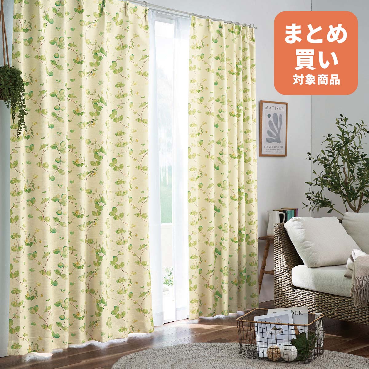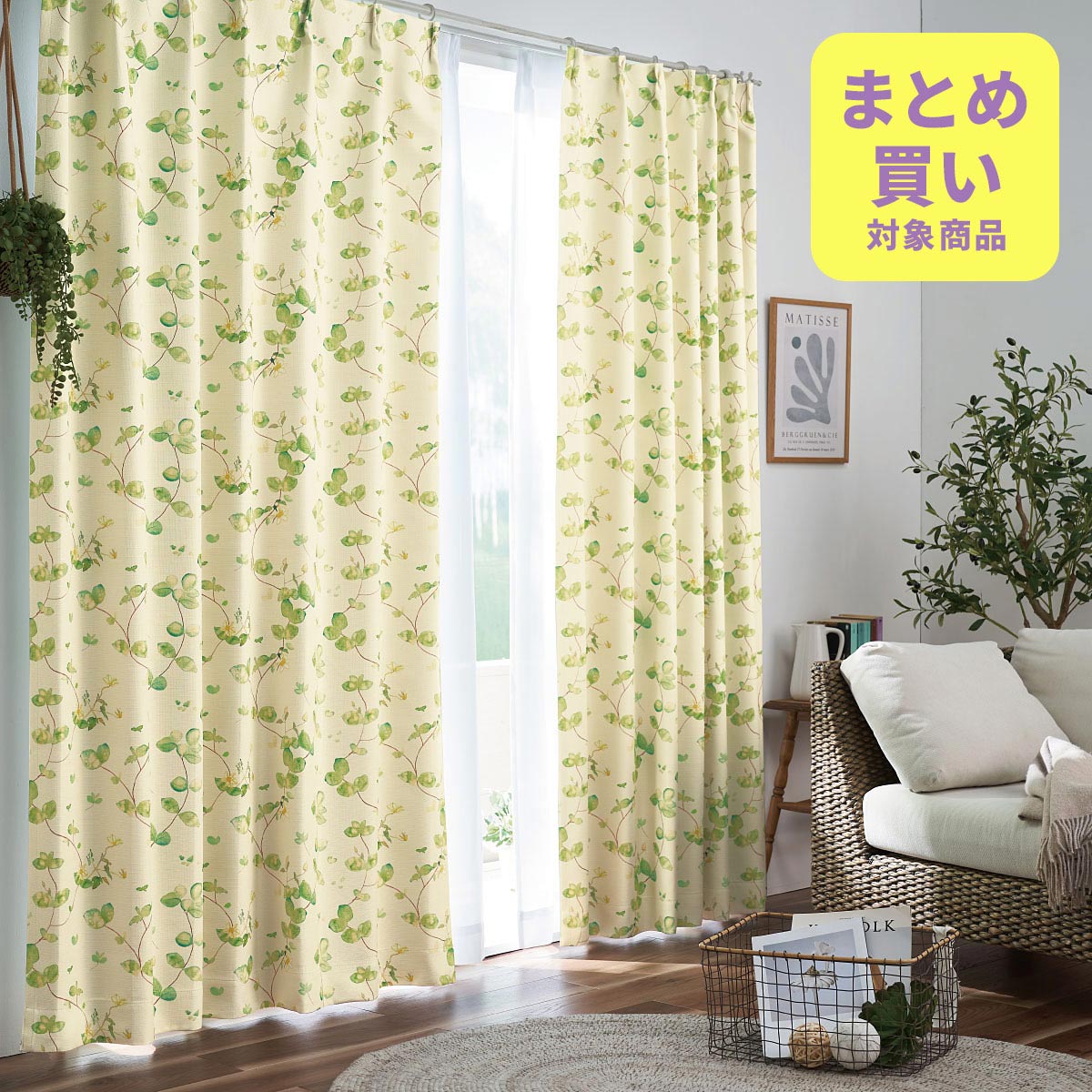 〔形状記憶加工付き〕ナチュラルなリーフ柄が美しい、1級遮光カーテンです。遮熱・保温効果に優れているので、冬は暖かく夏は涼しく。さらに遮音効果で音漏れも軽減します。