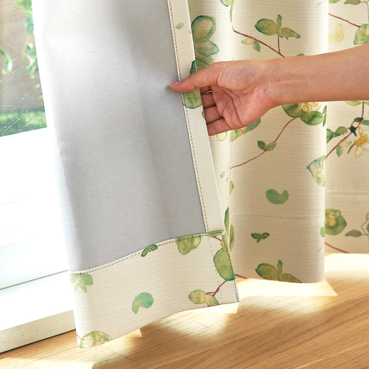 水彩で描かれたようなリーフ柄がお部屋をナチュラルな空間に演出する、1級遮光カーテンです。遮光率100%で眩しい朝日や西日も徹底カット。遮熱・保温効果に優れ、窓から侵入する熱気・冷気をしっかり防いで冷暖房効率もアップ。省エネしながら1年中快適に過ごせます。さらに遮音効果で、ぐっすり眠りたい方の寝室や騒音が気になるお部屋にもおすすめ。表生地と裏生地の間に特殊な黒フィルムを挟み込み、加工を施すことで高いトリプルカット機能を発揮します。小窓から幅広窓まで対応できる、充実のサイズ展開をご用意しました。