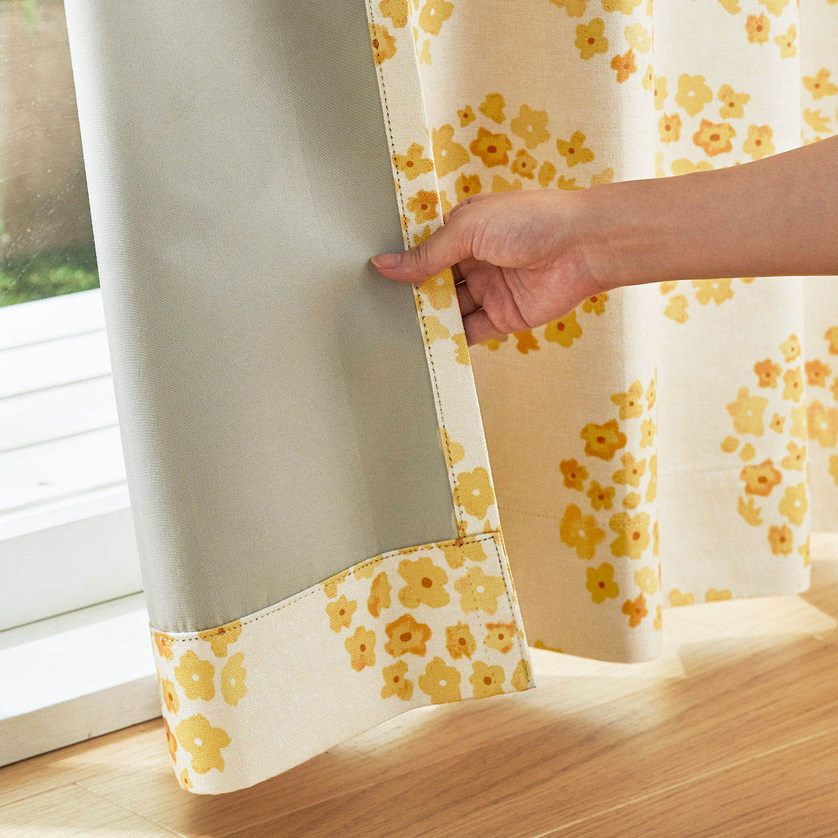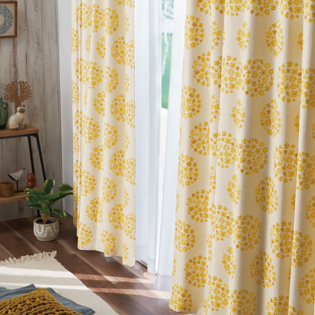 イエロー系あたたかみのある花サークルが可愛い、1級遮光カーテンです。