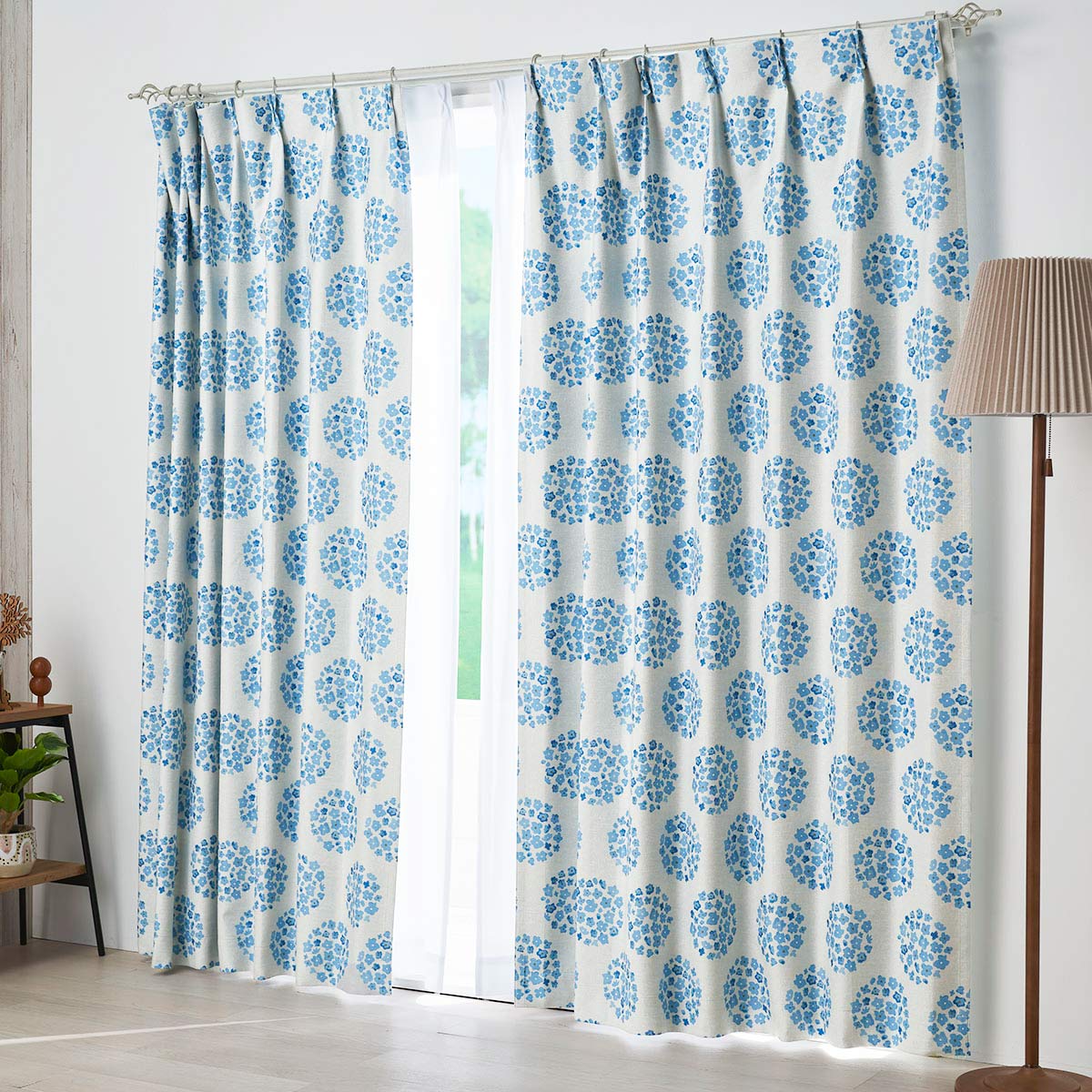 〔形状記憶加工付き〕明るいカラーとフラワーサークルが愛らしい、1級遮光カーテンです。遮熱・保温効果に優れているので、冬は暖かく夏は涼しく。さらに遮音効果で音漏れも軽減します。