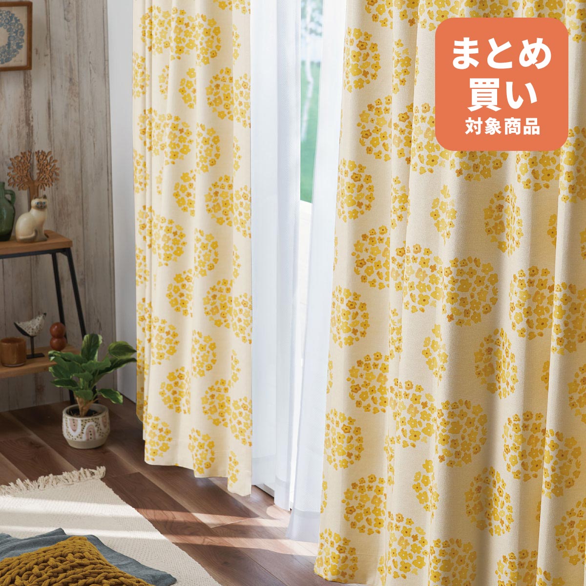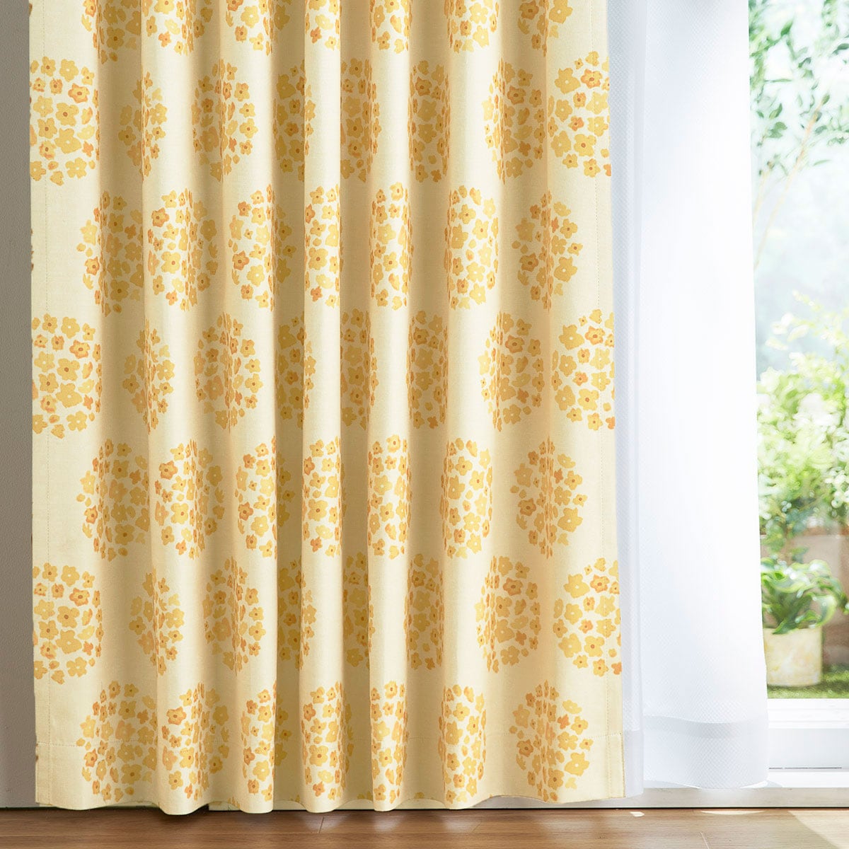 イエロー系あたたかみのある花サークルが可愛い、1級遮光カーテンです。