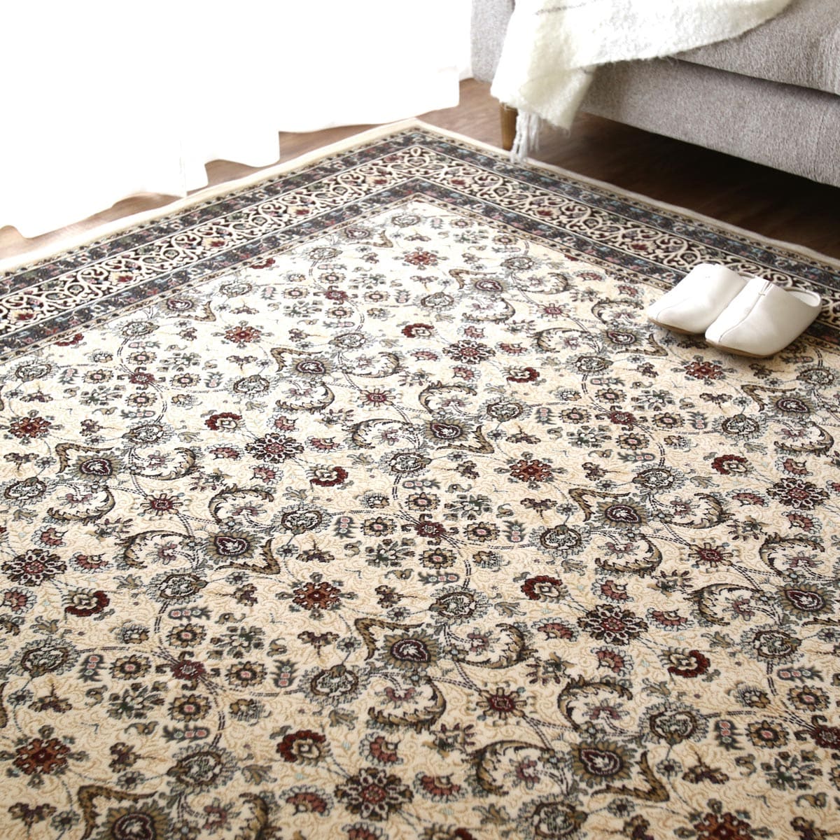 美しさと機能性を兼ね備えた、なめらかな手足の国産モケット織りラグです。風格の漂う繊細な織り柄が、いつものリビングを格上の印象に。