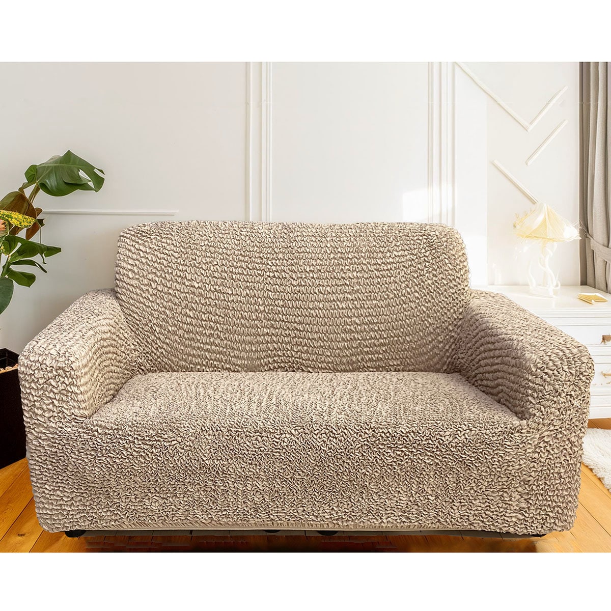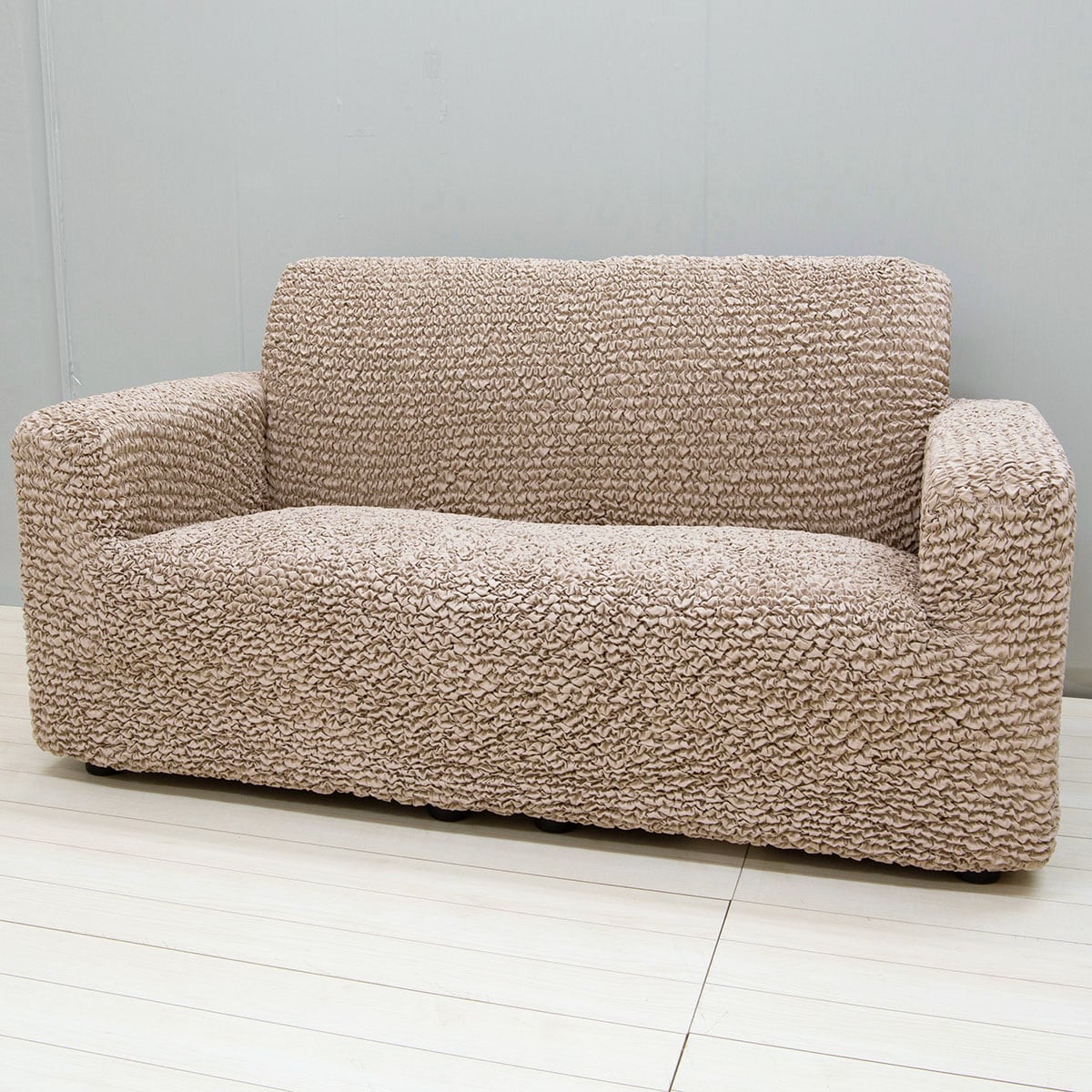 ベージュ 肘ありM (2人掛け用)やわらかな肌ざわりが心地いいイタリア製フィットソファカバーです。