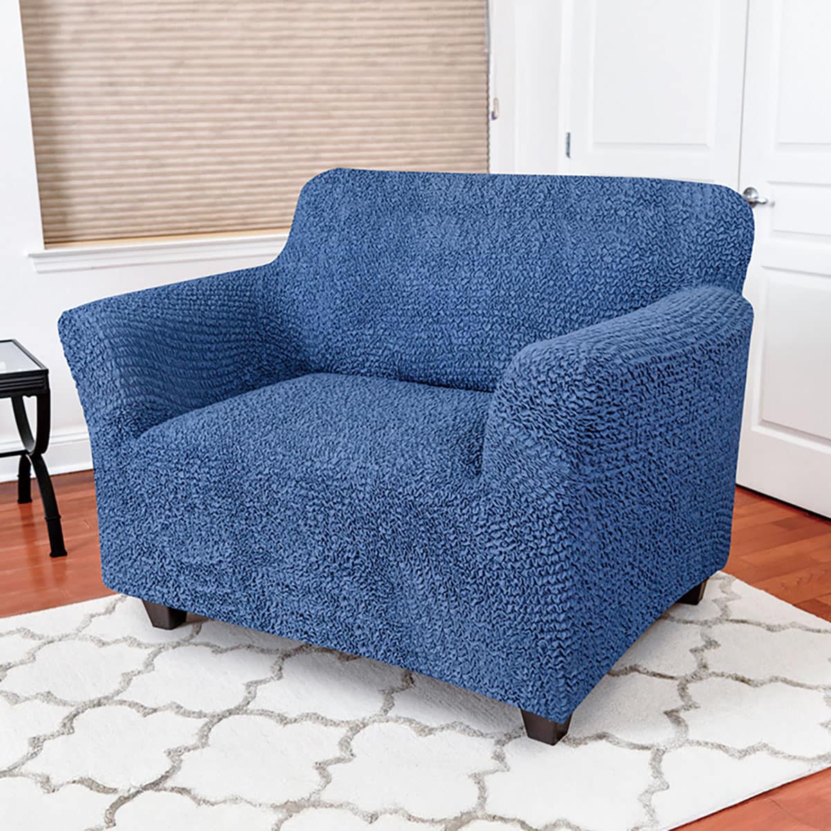 ブルー 肘ありS (1人掛け用)今お使いのソファにかぶせるだけでお部屋が上品な空間に早変わり。