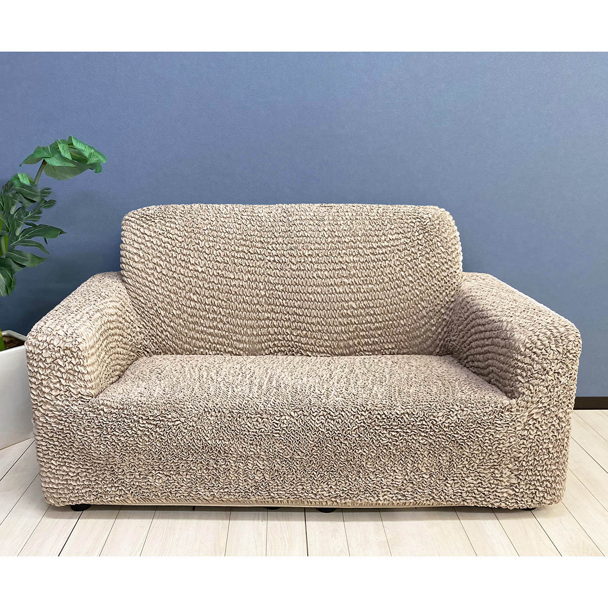 ベージュ 肘ありM (2人掛け用)ストレッチ素材なのでソファの形に合わせてぴったりフィットします。