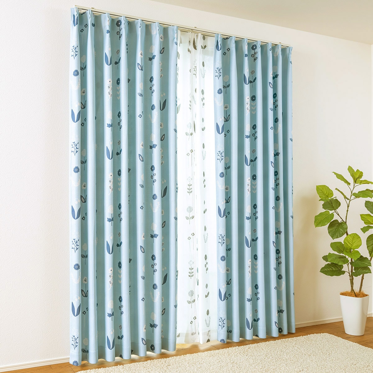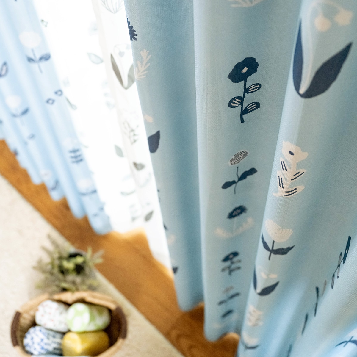 ブルー(十二花譜)日本の四季をやさしく表現した「星燈社」のデザインカーテンです。