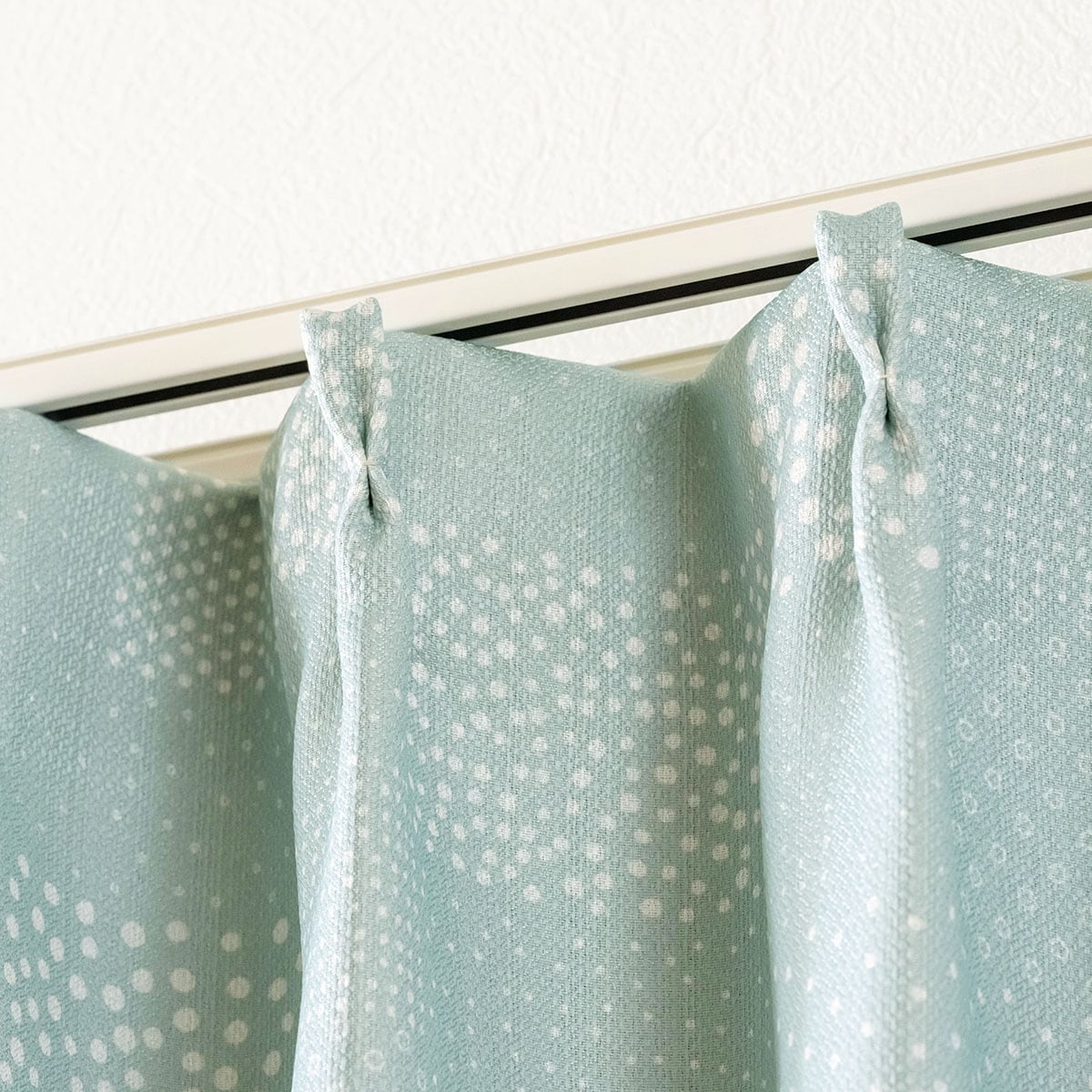 シャドーブルー(ゆきだま)形状記憶加工付きで、きれいなドレープを保ちます。