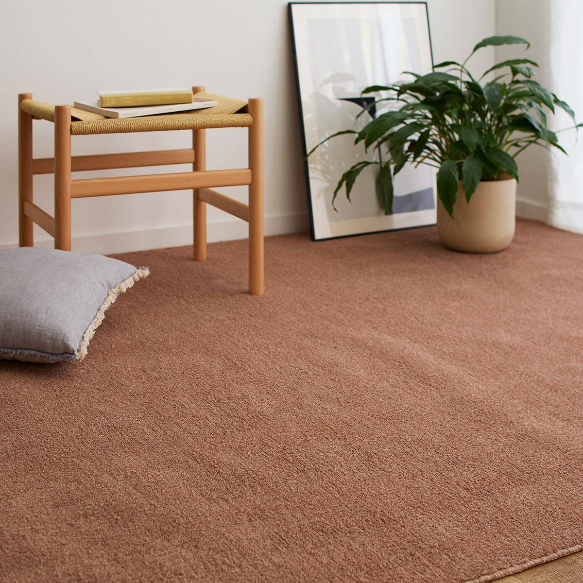 テラコッタ 6畳(横352×縦261cm) ふんわり優しい踏み心地のカットパイルカーペット お部屋の雰囲気に合わせて選べる豊富なカラー展開。敷き詰められるカーペットでホコリも舞い上がりにくい。 ペットの爪も引っかかりにくいです。