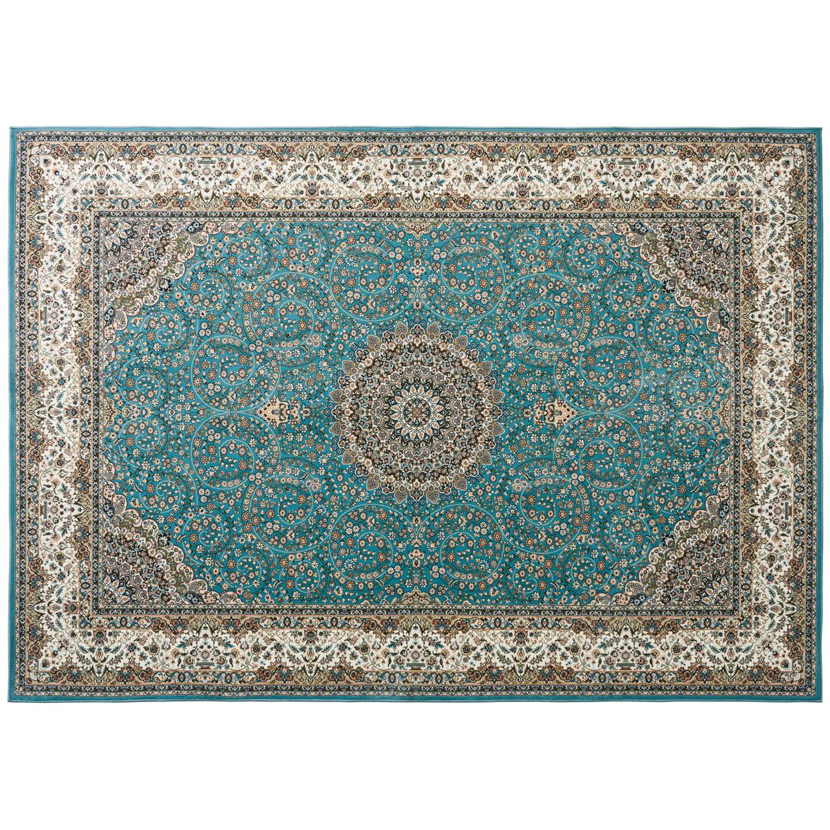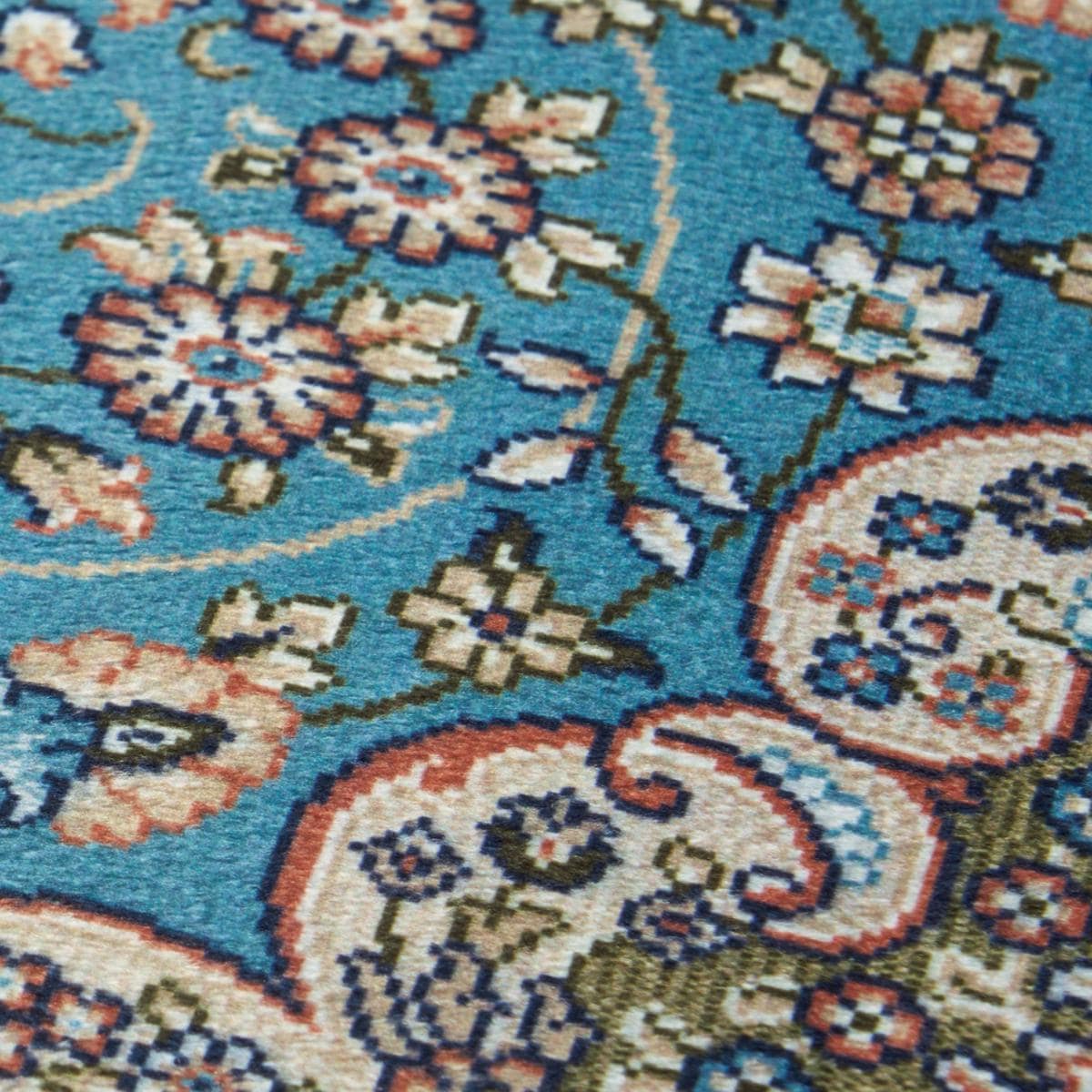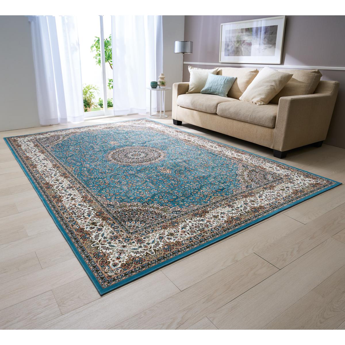 ブルー(横290×縦200cm)高級絨毯のような華やかさなのに、洗えてお手入れ簡単! なめらかエレガントラグです。