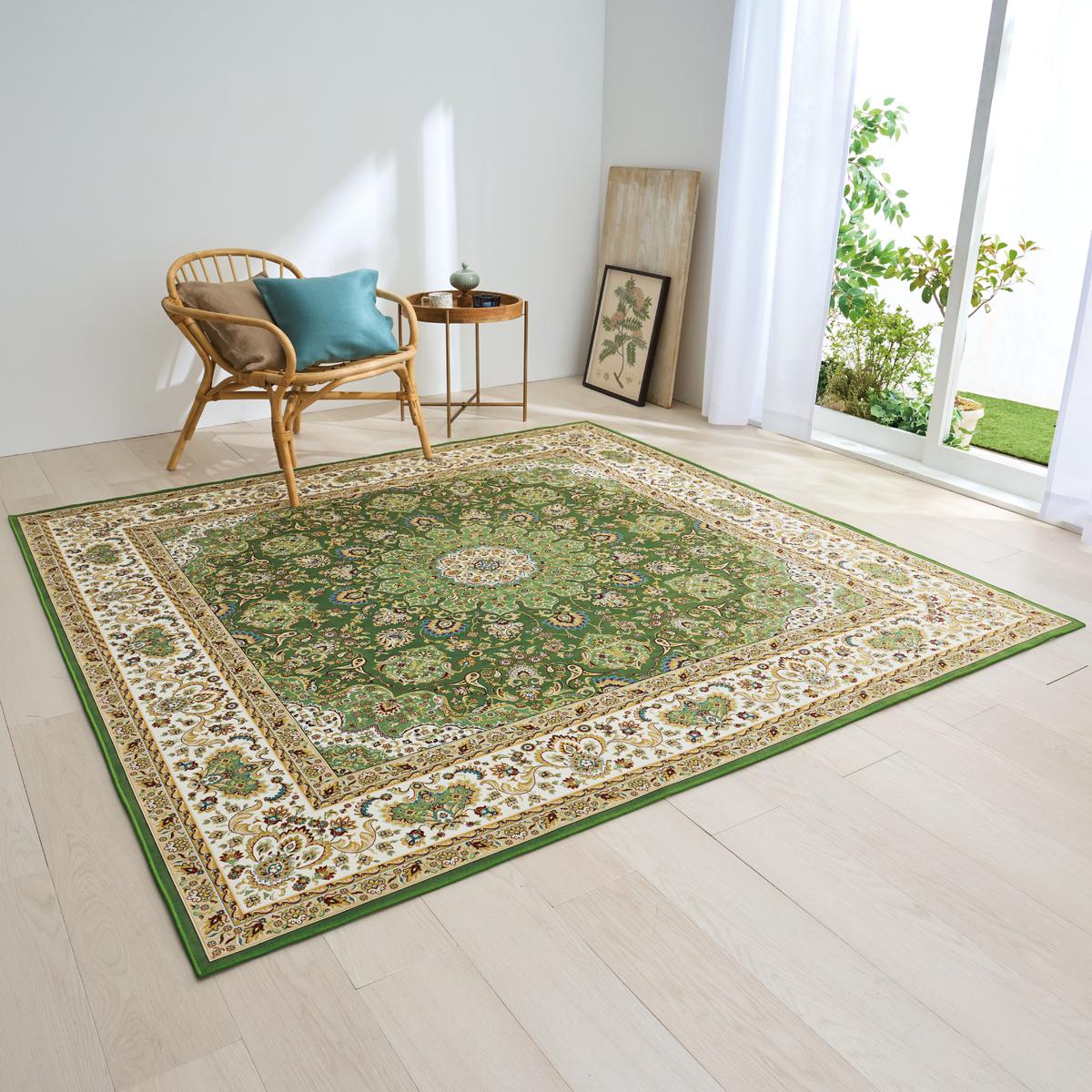 グリーン(横200×縦200cm)プリントならではの繊細な模様がお部屋をエレガントに演出。