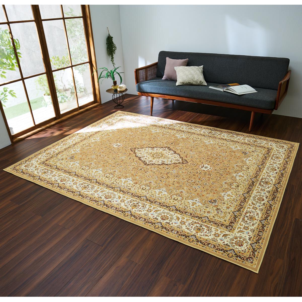 高級絨毯のような華やかさ、なのに洗えてお手入れ簡単!プリントならではの繊細な模様がお部屋をエレガントに演出します。微起毛のなめらかな肌ざわりで一年中快適にお使いいただけます。
