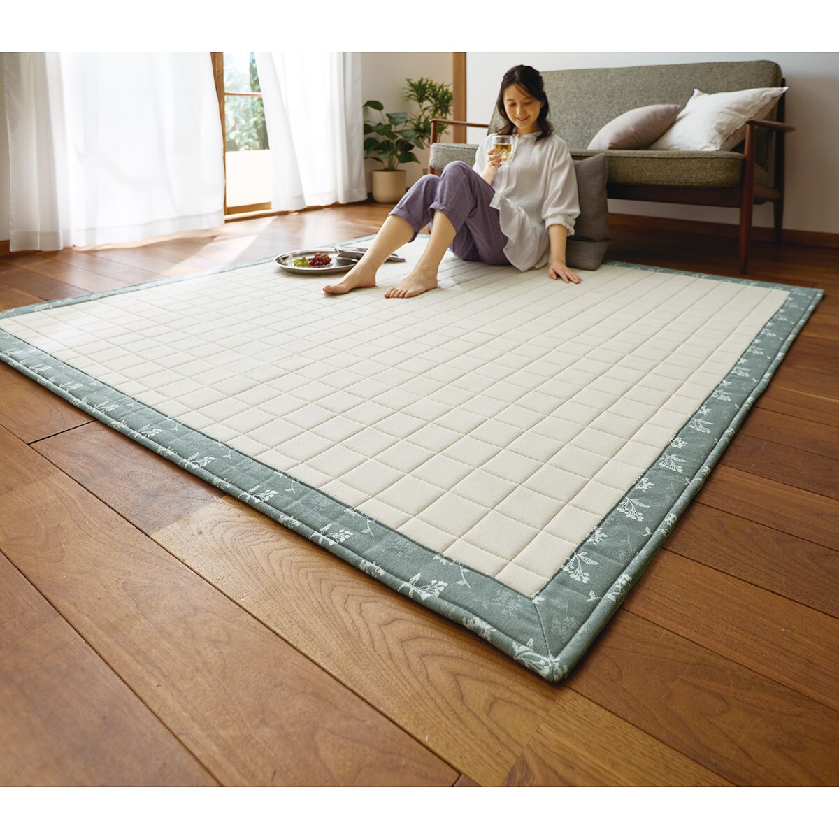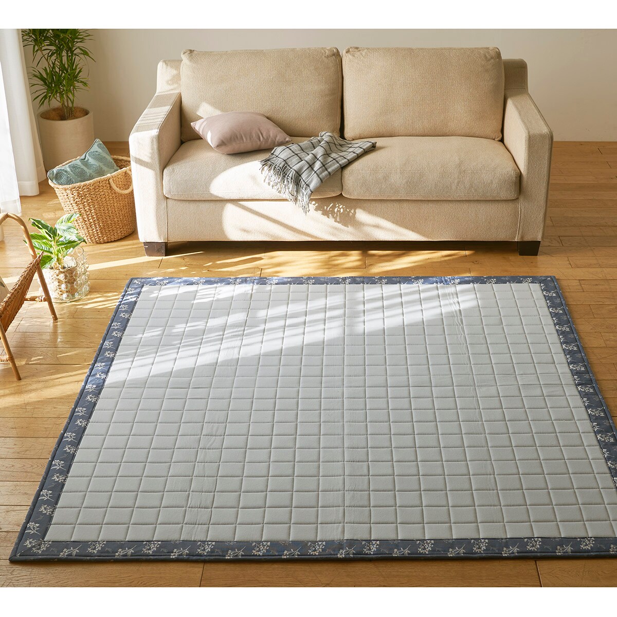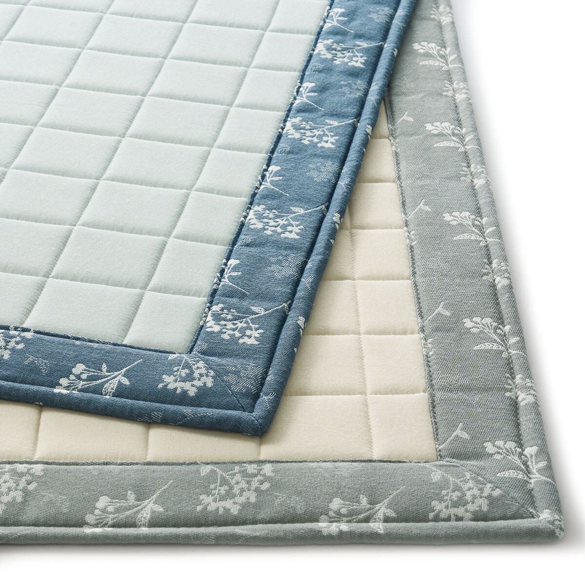 やさしく吸湿性にすぐれた「平織り綿キルト」ラグ。さらりと優しい綿100%の肌ざわりとふっくらとした踏み心地が魅力です。