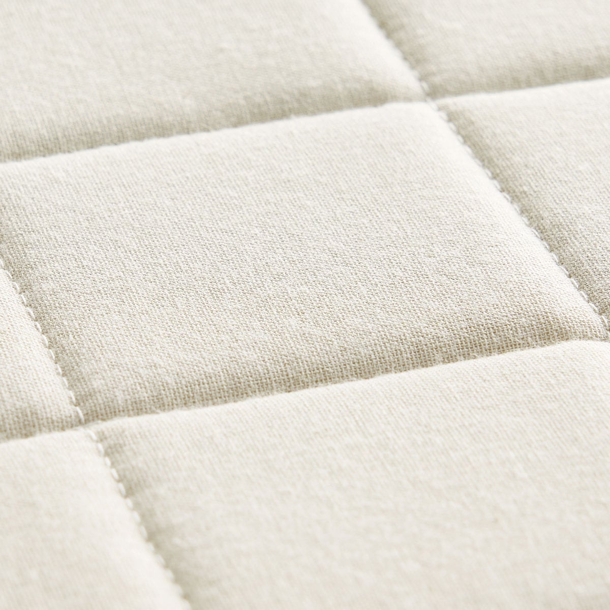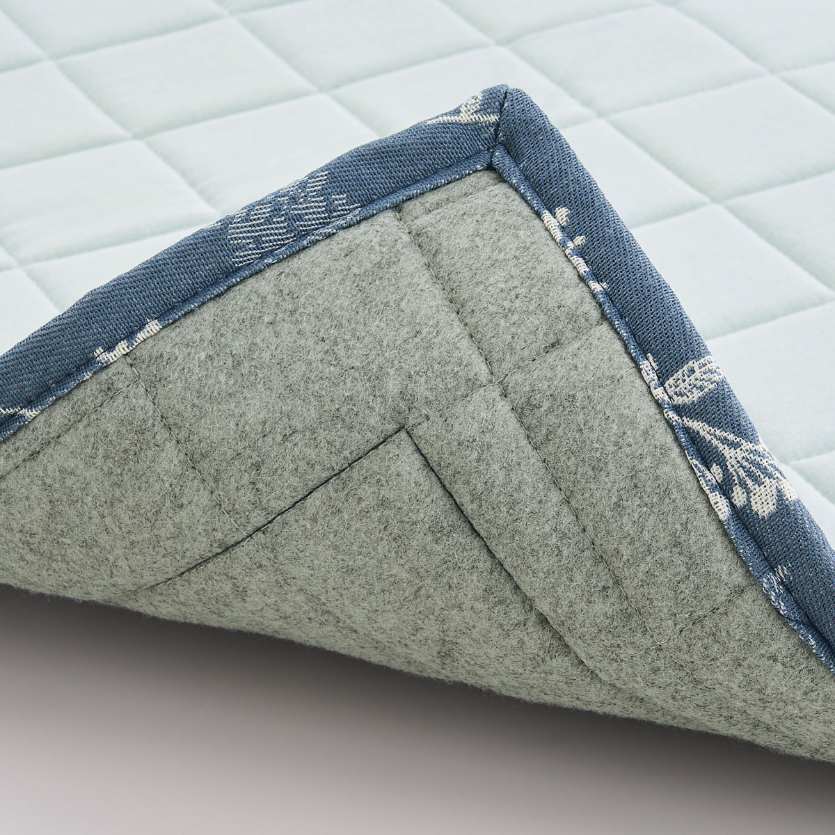 綿100%でさらりとやさしい肌ざわりの平織りキルトラグです。吸湿性に優れているのでムレにくく、汗ばむ夏も快適です。ウレタンフォーム入りでふっくらしたした踏み心地になっています。インテリアにも合わせやすい落ち着いたカラーも魅力です。裏面は床を傷つけにくい不織布貼り仕様です。