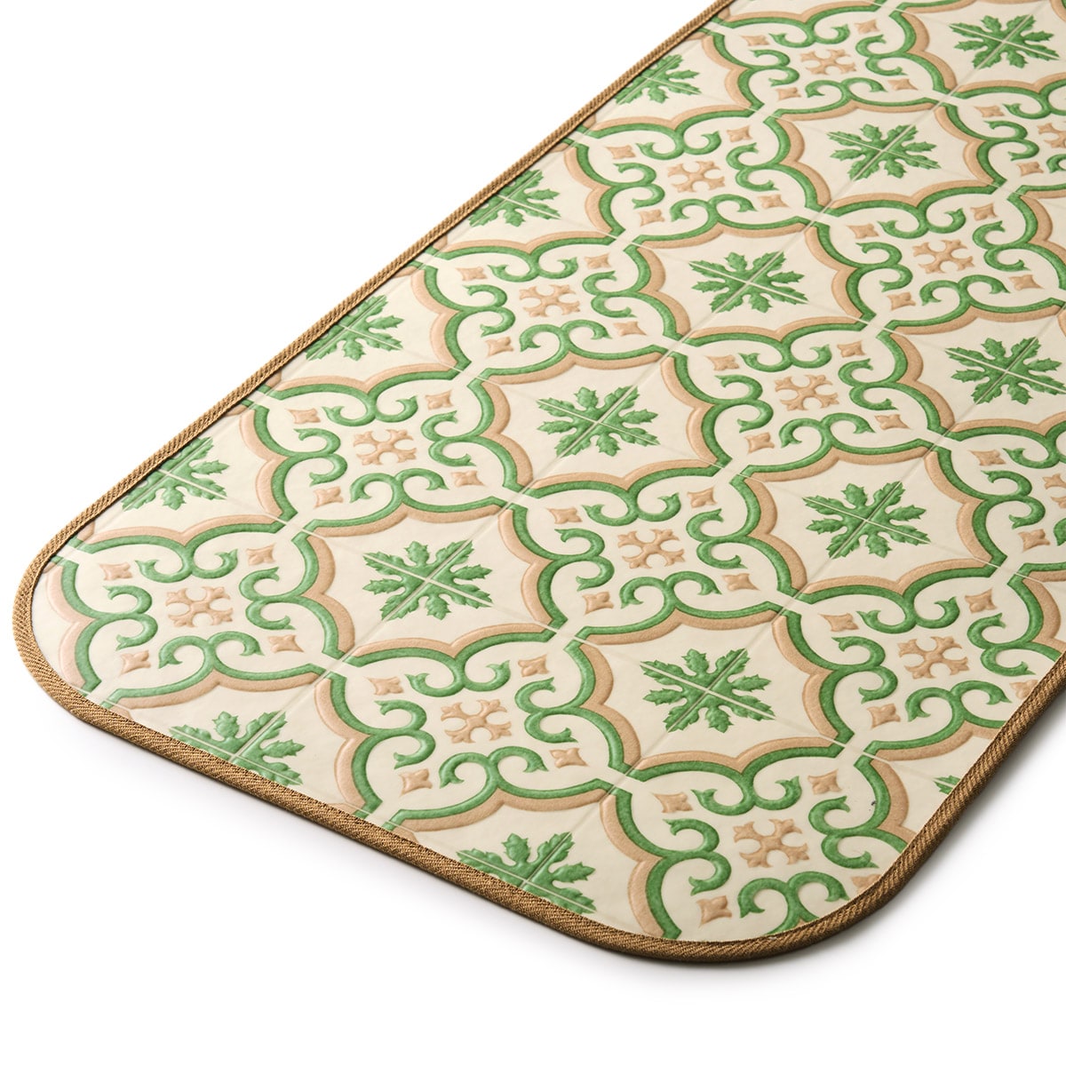 グリーン系(タイル柄) 260×60cmうっかり汚しても安心! 抗菌・防カビ加工付きでキレイが長く続くキッチンマットです。