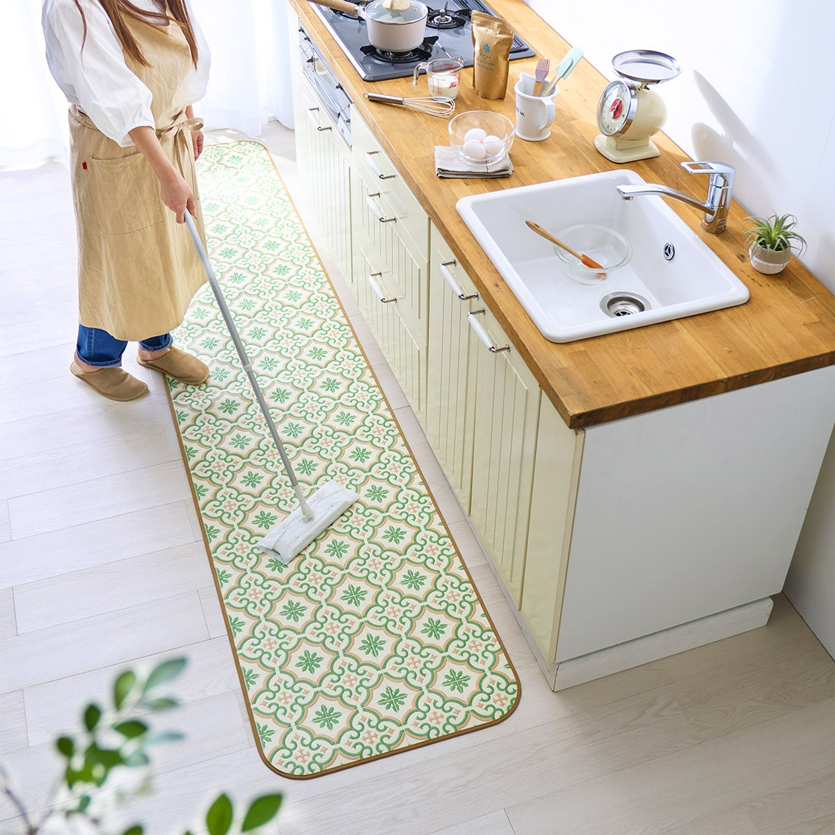 グリーン系(タイル柄)水や油で汚れやすいキッチンの床も、拭くだけでお手入れ簡単。