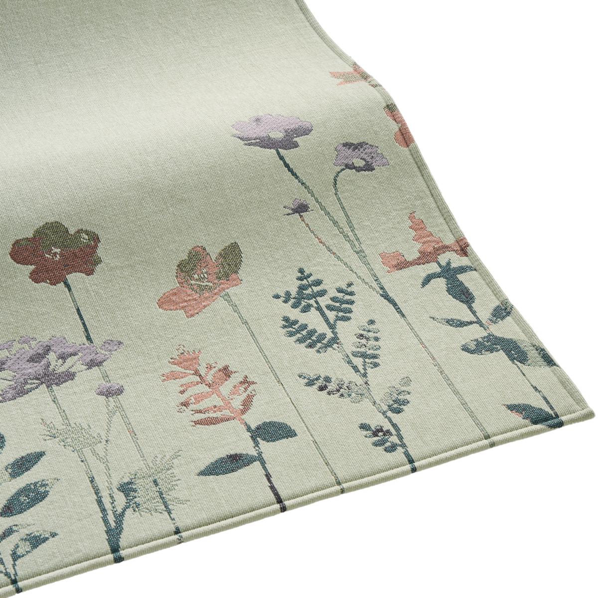 細やかな織りで描くボタニカル柄ラグ。シェニール糸を織り込んだジャカード織りで、やさしい色合いの花柄を表現しています。