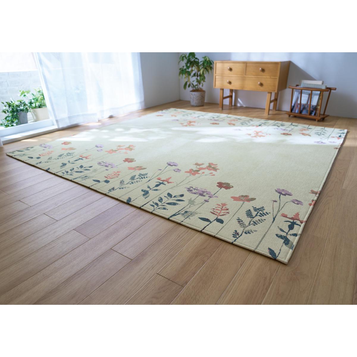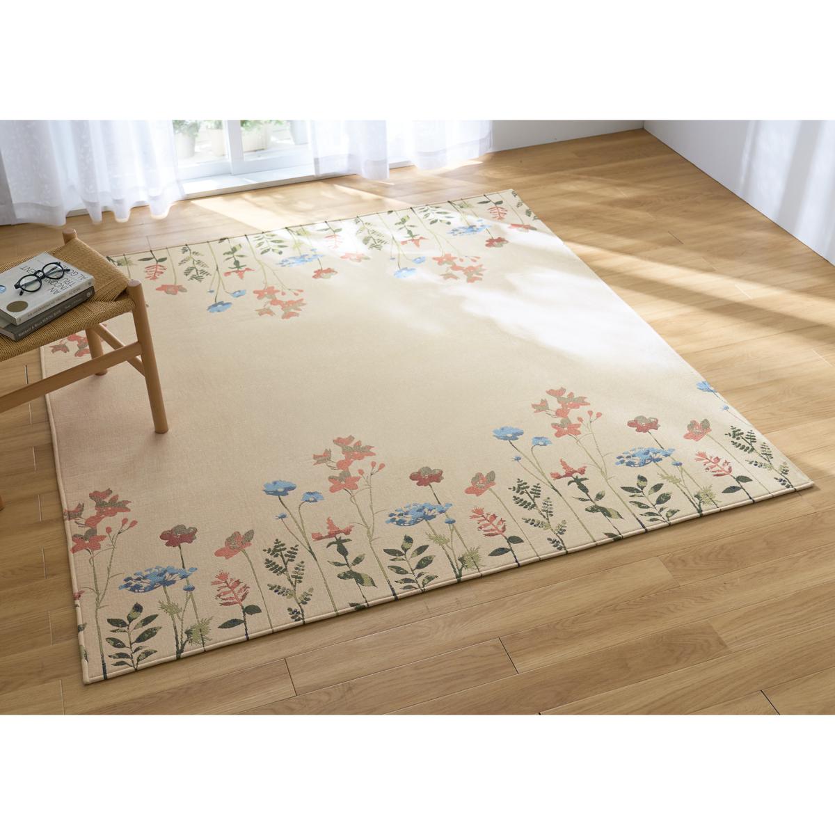 サラッと快適な花柄ラグ