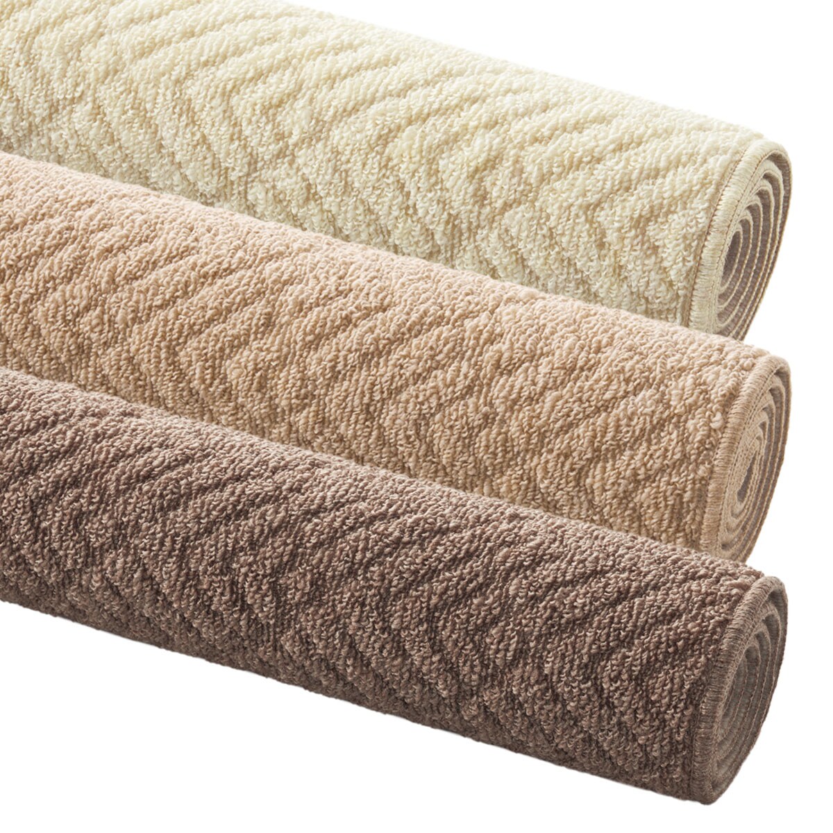 (上から)アイボリー、ベージュ、ブラウン 折りじわのつかない丸巻きでお届け。