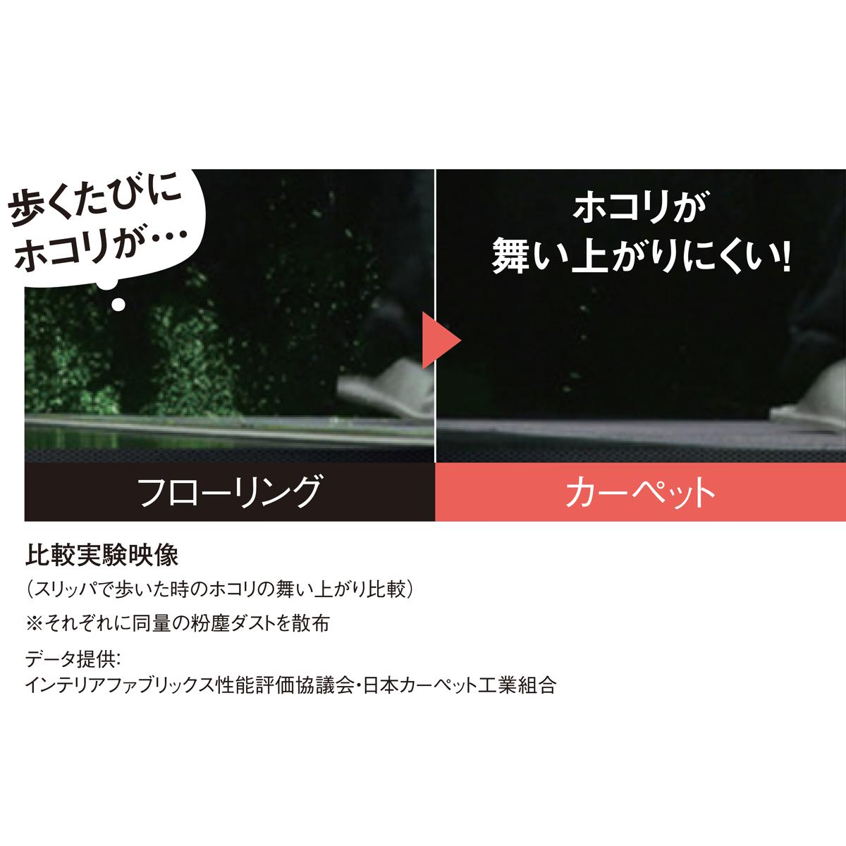ご存知ですか?カーペットには、ハウスダストの舞い上がりを抑制する効果が報告されています。実験によると、カーペットでの舞い上がり量はフローリングの10分の1、瞬間的には最大20分の1という結果に。ハウスダスト対策にはカーペットを敷くのがおすすめです。