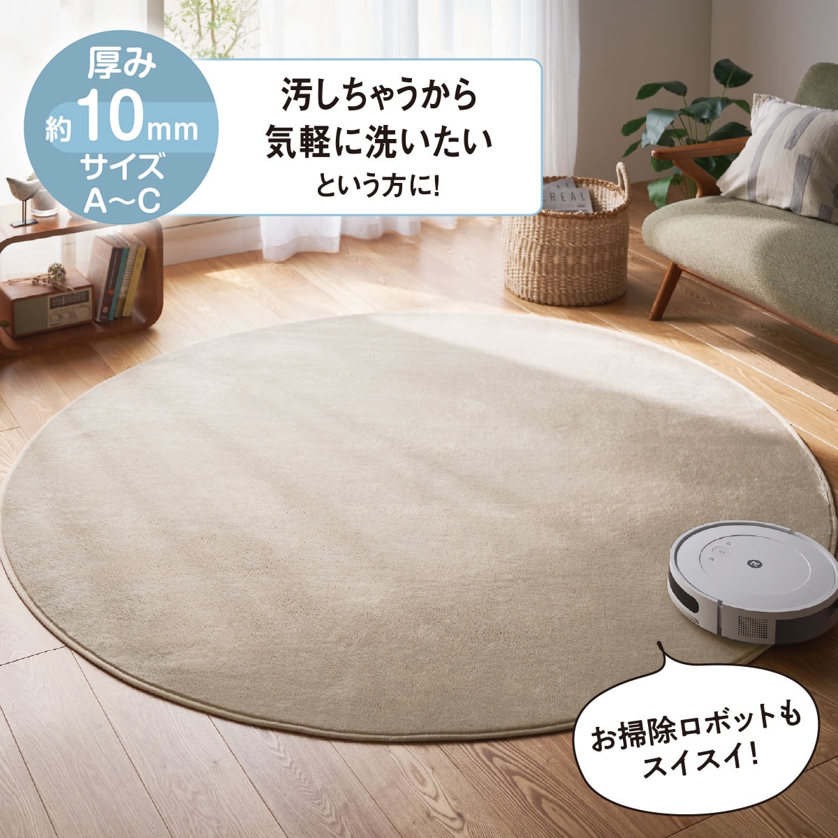 ベージュ C (円形/直径185cm)とろけるようになめらか! 厚みが選べるメレンゲタッチラグです。
