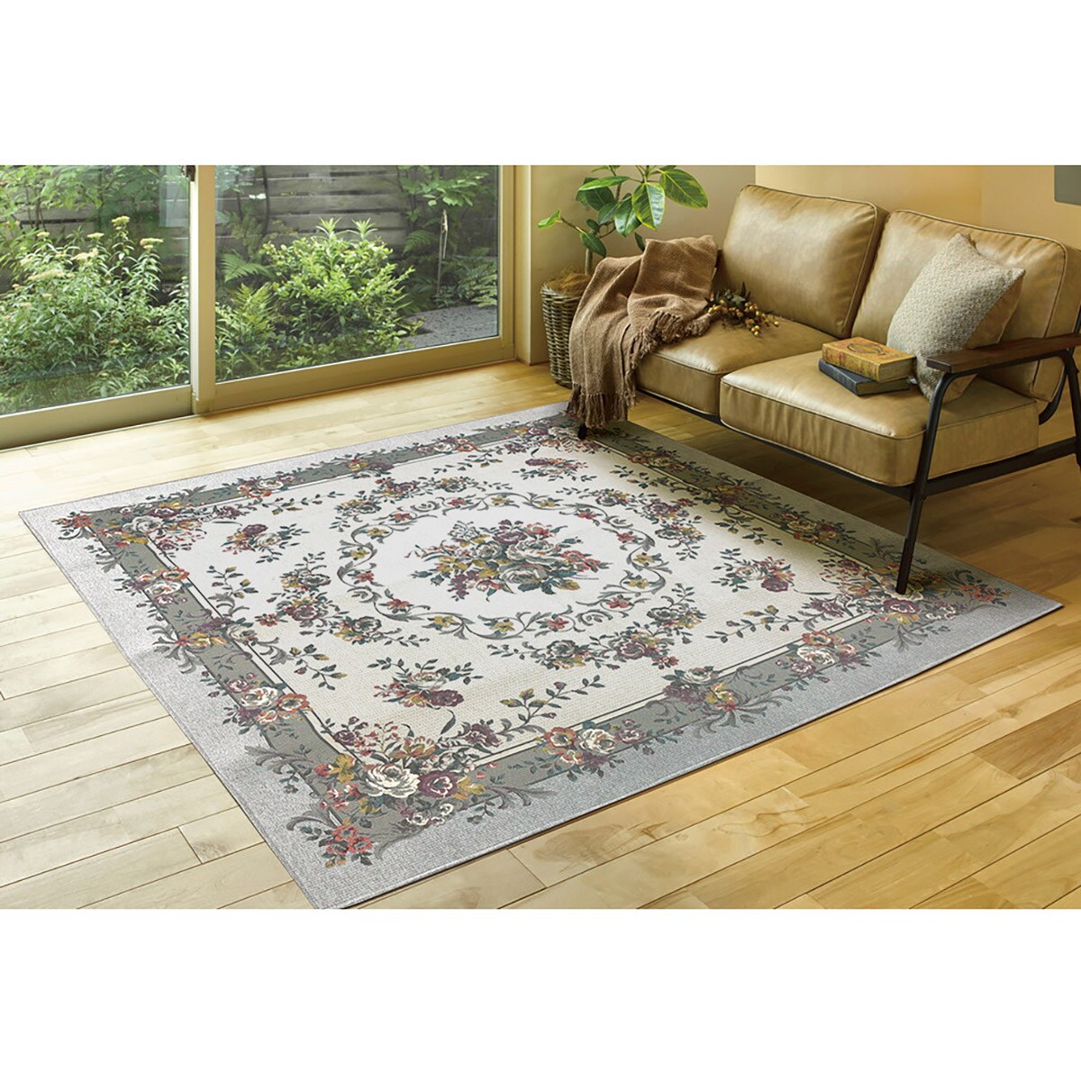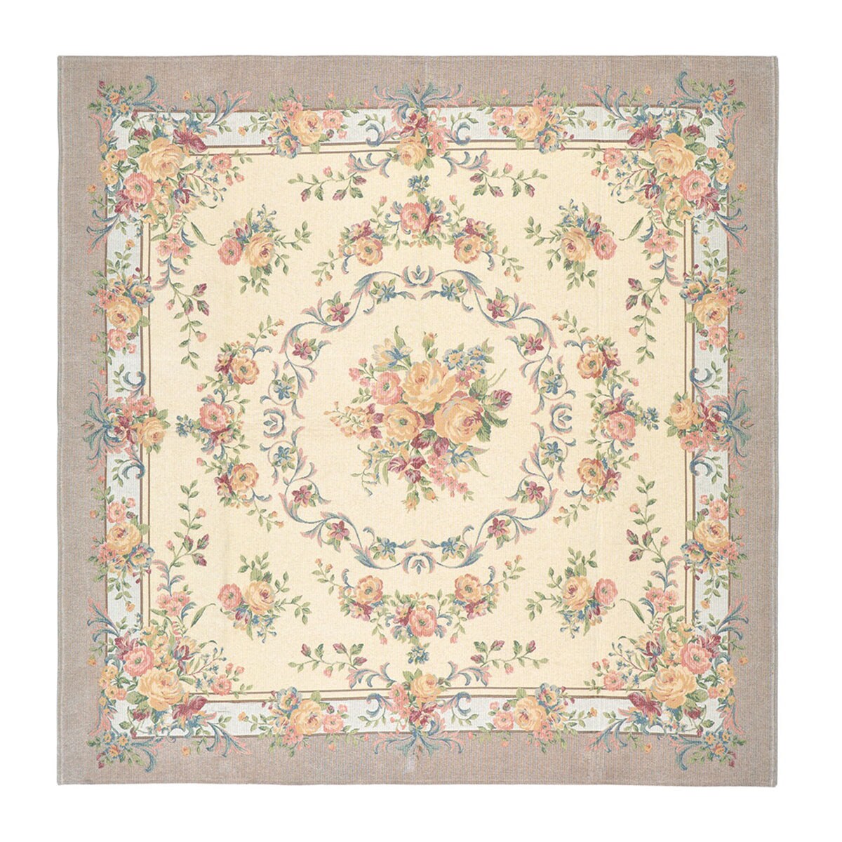 ベージュ(横185×縦185cm) 重厚感のあるゴブラン織りでエレガントな花束を表現。