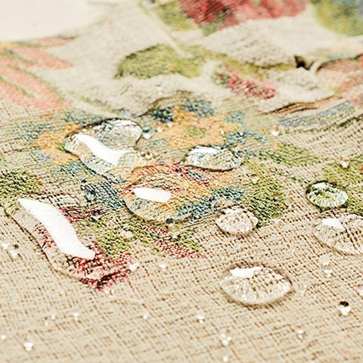 重厚感のあるゴブラン織りでエレガントな花束を表現。サラッとした肌ざわりで一年中心地よく、毛足が短いのでお手入れも簡単です。裏面は床を傷つけない不織布貼り。