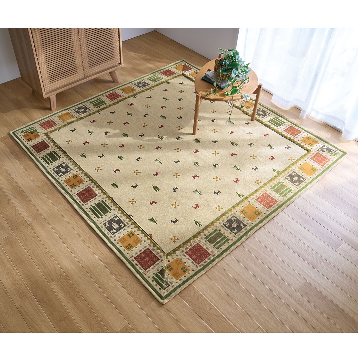 ベージュ(横185×縦185cm)明るく楽しいギャッベ柄で暖かみのある空間に。
