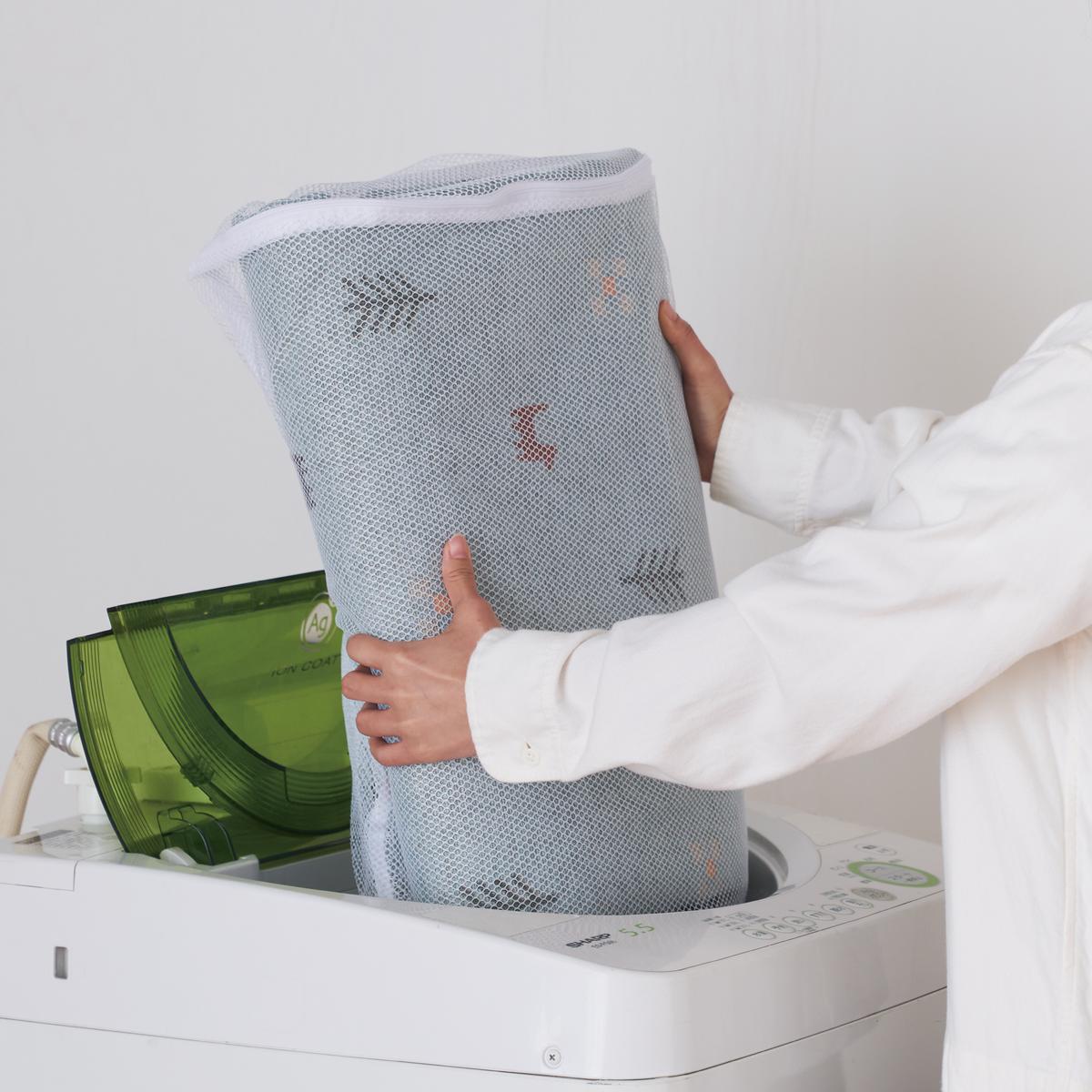 ラグを入れて丸洗いできる洗濯ネット(3畳用)付き。