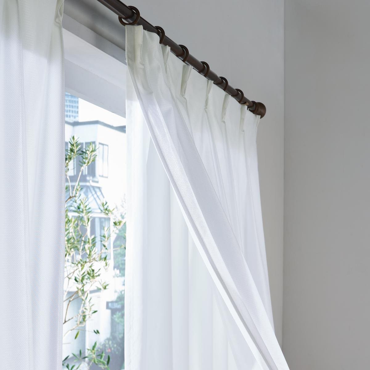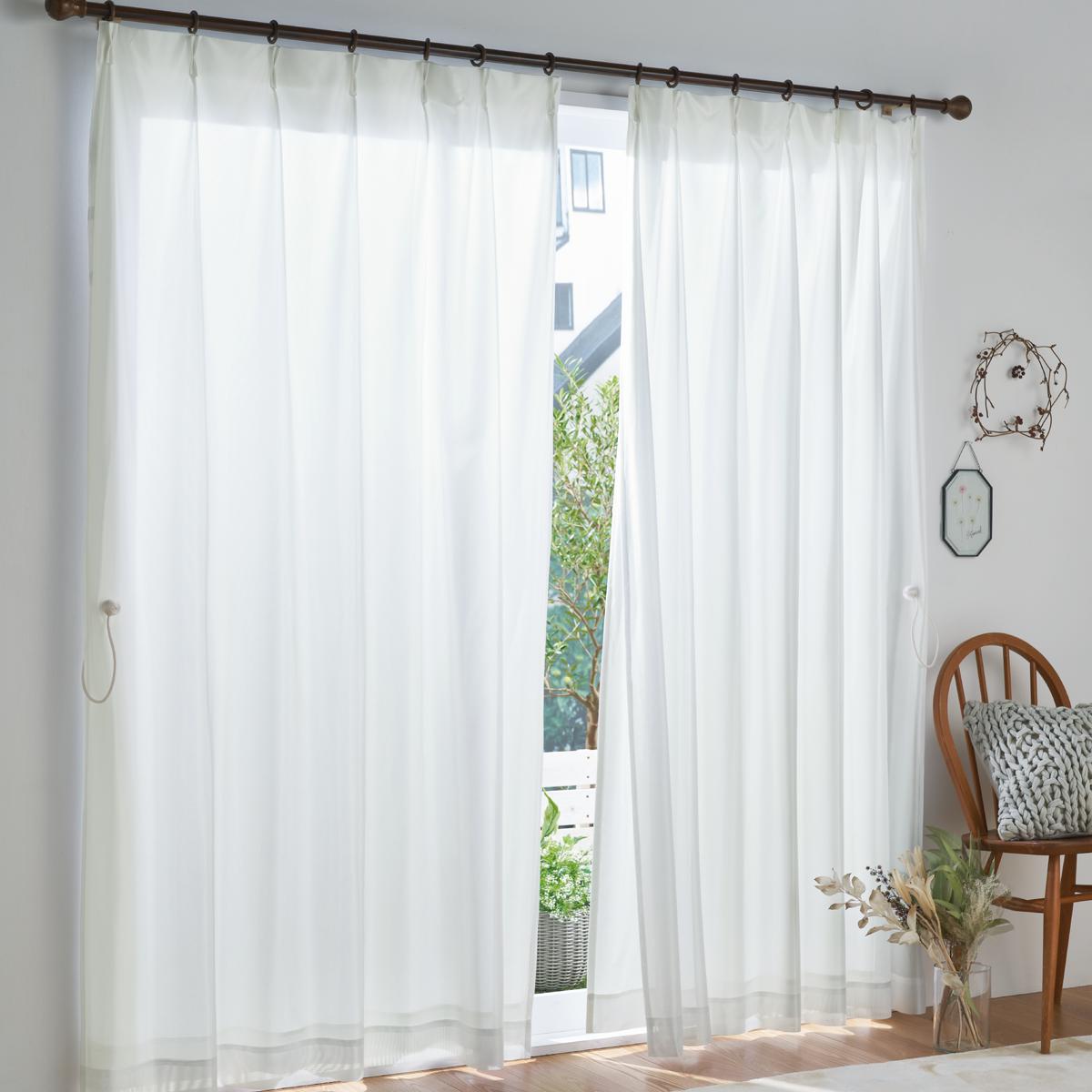 ■ポリエステル100% ※受注生産商品のため、お届けまでに3週間程度かかります。予めご了承ください。●アジャスターフック付き(Aフック) ●マグネット式ひもタッセル2本付き(ホワイト) ●洗濯機OK(ネット使用)●中国製【形状記憶加工付き】(1枚使い)【目隠しレベル/昼2・夜1】 【明るさの目安:明るい】【生地厚の目安:やや薄手】(2枚使い)【UVカット】(約99%)【目隠しレベル/昼5・夜5】 【遮熱・保温】 【明るさの目安:やや暗い】【生地厚の目安:やや厚手】【小型別配送】 【交換・返品不可】※受注生産商品のため、ご注文後のキャンセル、不良品以外でのお客様都合による交換・返品はお受けできません。※一般のレースカーテンに比べて、内側から外が見えにくくなります。※当社のUVカット機能表示は、公的機関によって検査された紫外線遮蔽率70%以上の商品に表示しています。UVカット率が高く目隠し効果の高いレースカーテンは、通常のレースカーテンと比較してお部屋が若干暗くなります。※沖縄県や一部島しょ部など配送上の都合によりお届けできない地域がございます。
