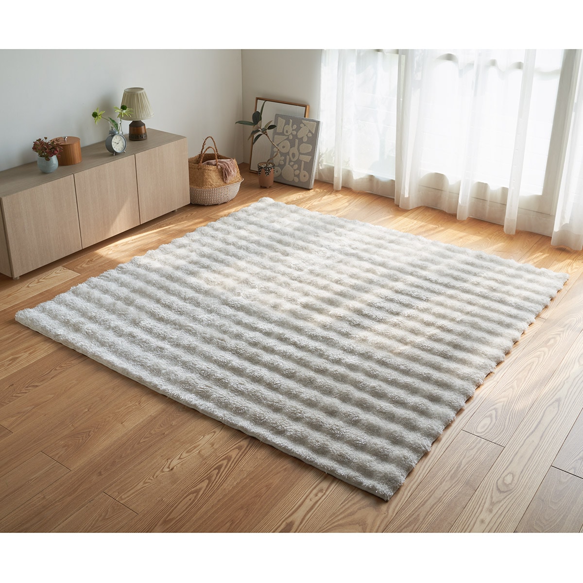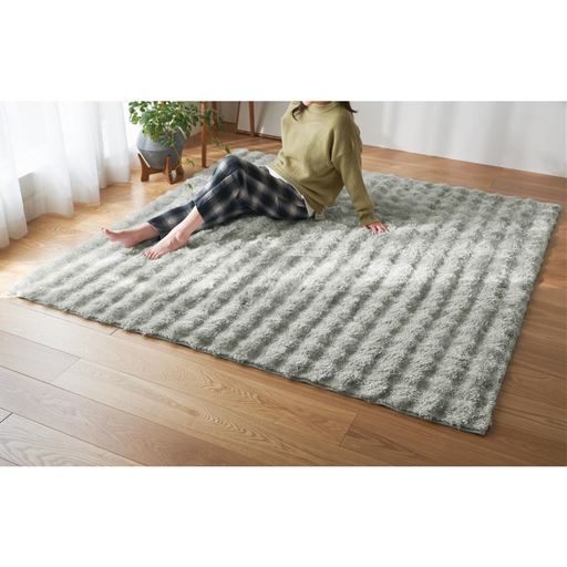 もふもふのボリューム感が気持ちいい!光沢感が美しいうずもれシャギーラグです。