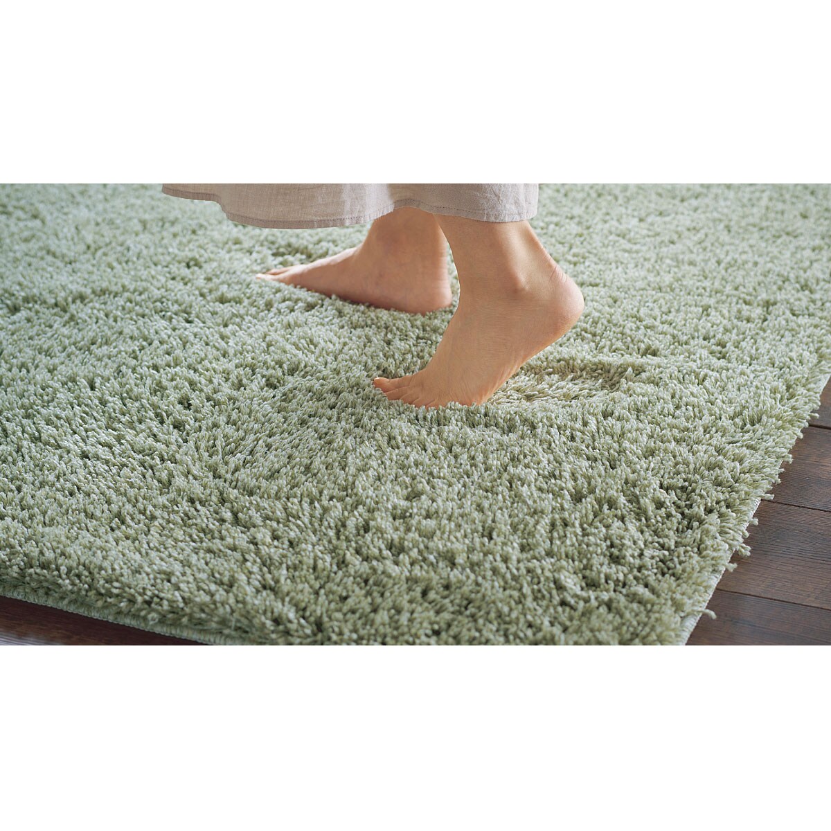 リビングの印象をアップ! ニュアンスのある表情が魅力のシャギーラグです。見る角度、光の加減で表情を変えるシャギーは、飽きがこないので長くご使用いただけます。長毛ながらダニを寄せつけず、洗濯機で気軽に洗えるから安心。汚れも目立ちにくく、ホコリも舞い上がりにくいので日々のメンテナンスもラクに。寝転んでも気持ちいいクッション性も魅力です。裏面の不織布にすべりにくい加工を施しているので、掃除機もスムーズにかけられます。コンパクトに折りたたんで収納できます。