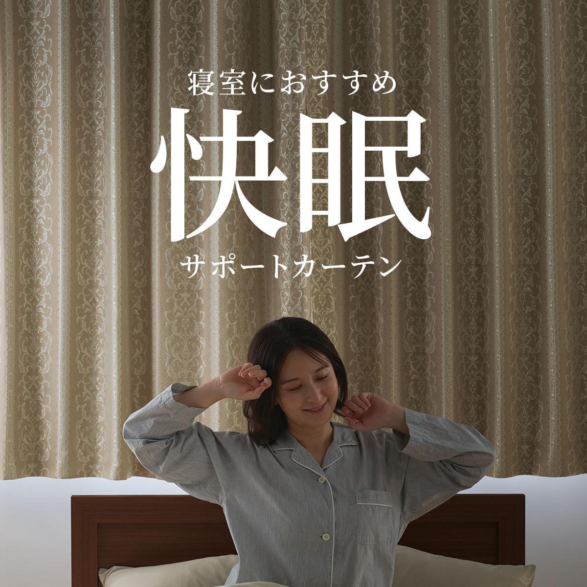 暗幕レベルの遮光率100%と遮音・遮熱保温効果で朝まで快適!寝室におすすめのすき間ブロックカーテンです。