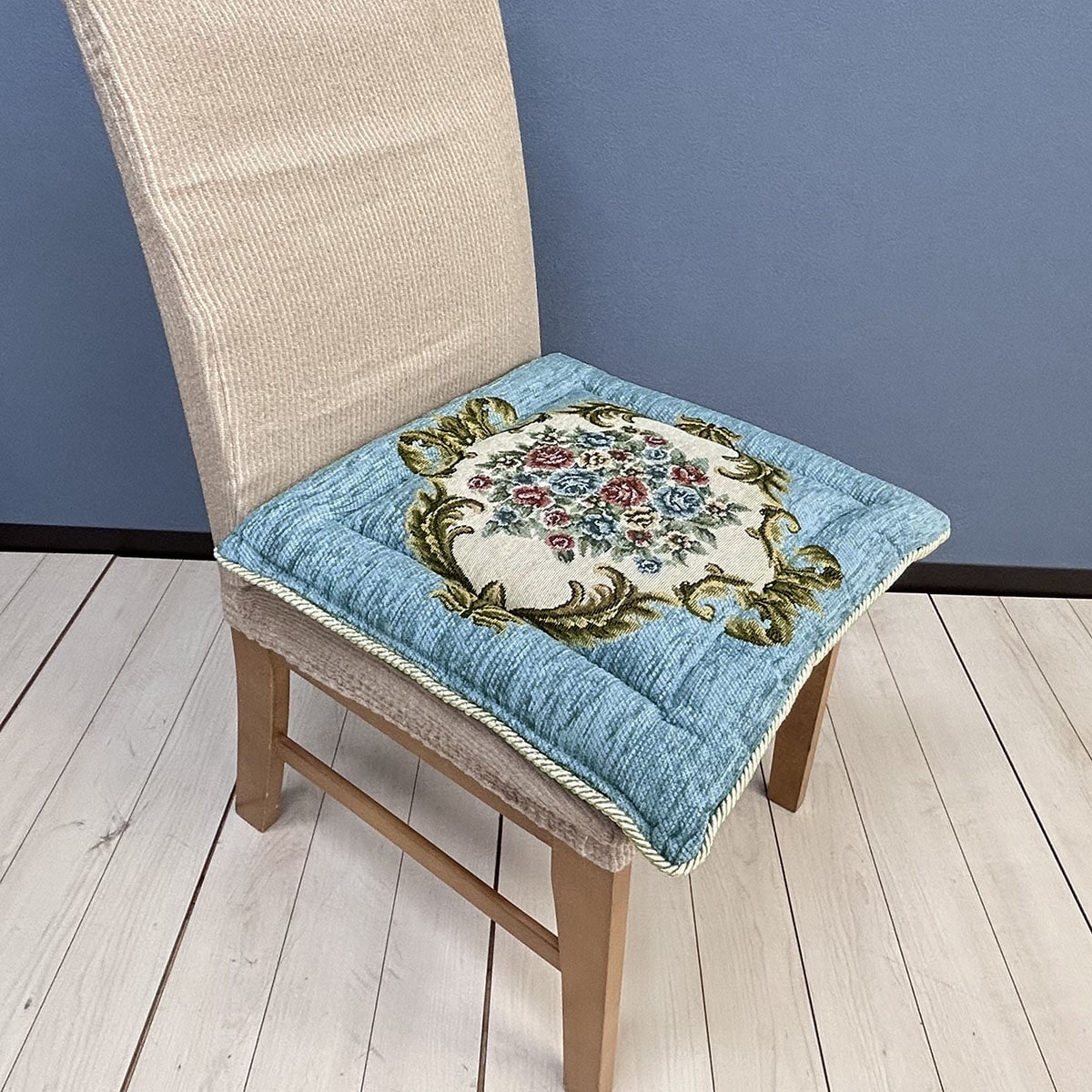 クラシカルな柄の『ロイヤルシリーズ』でリビングを格調高く演出。シリーズで揃えたい座り心地も快適なシートクッションです。
