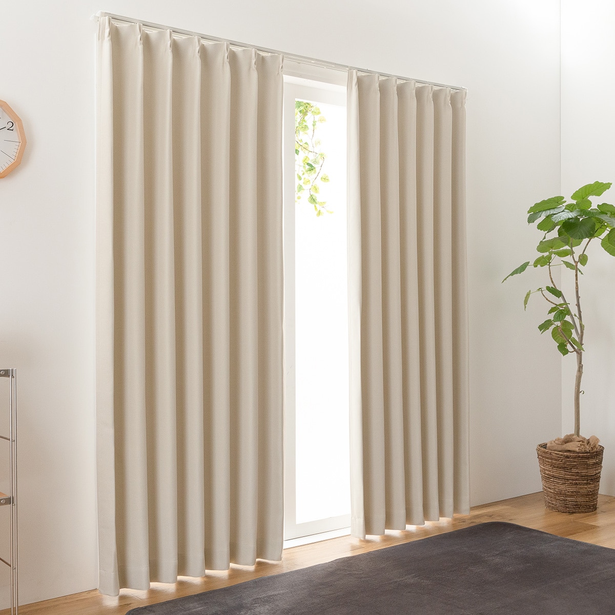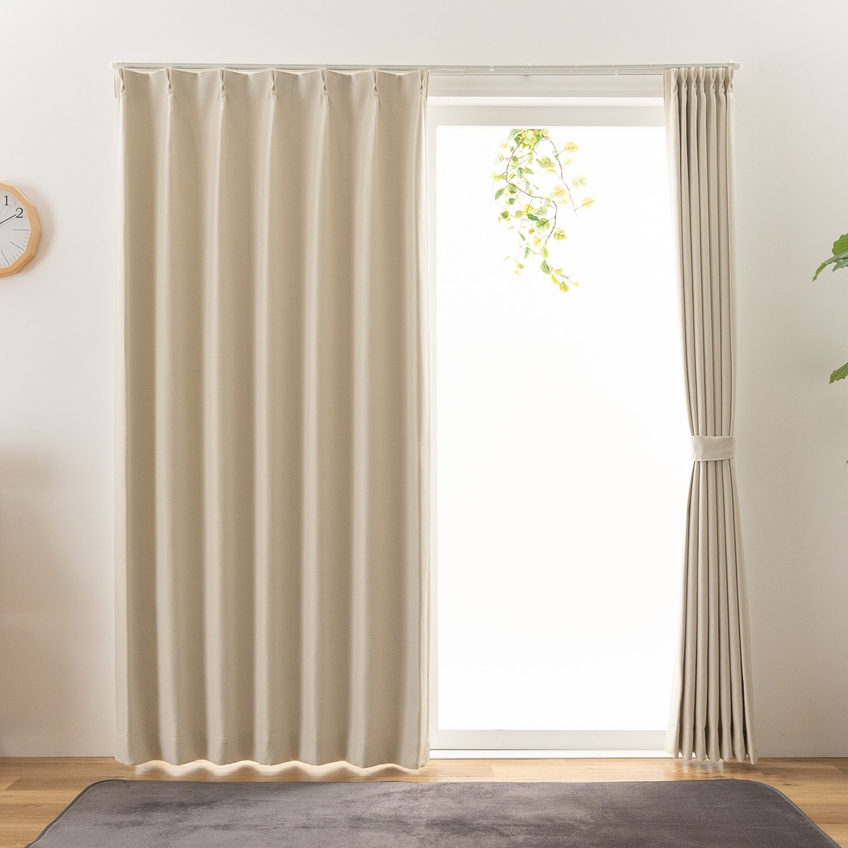 アイボリーお部屋を明るい印象にしてくれる、アイボリーカラーのカーテンです。