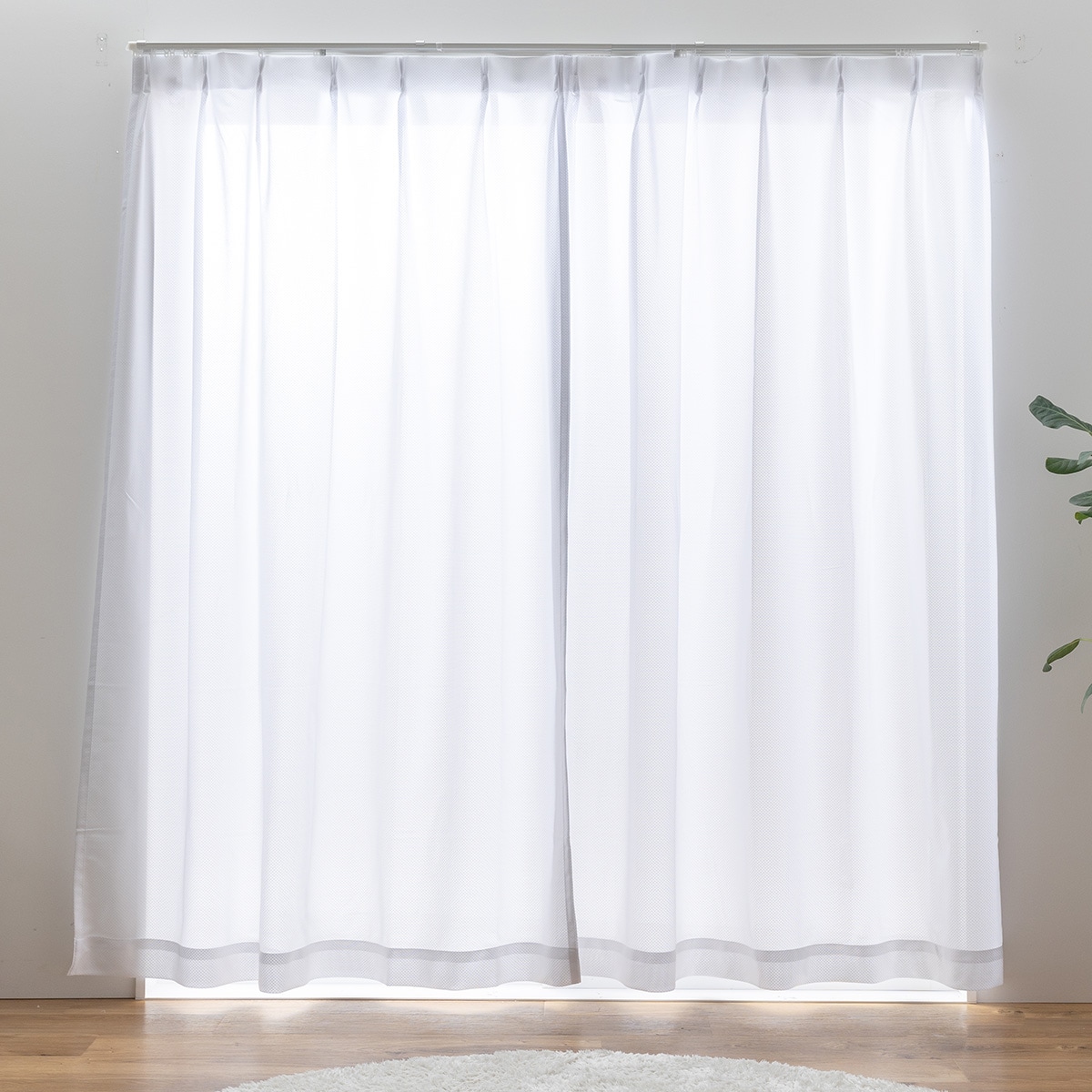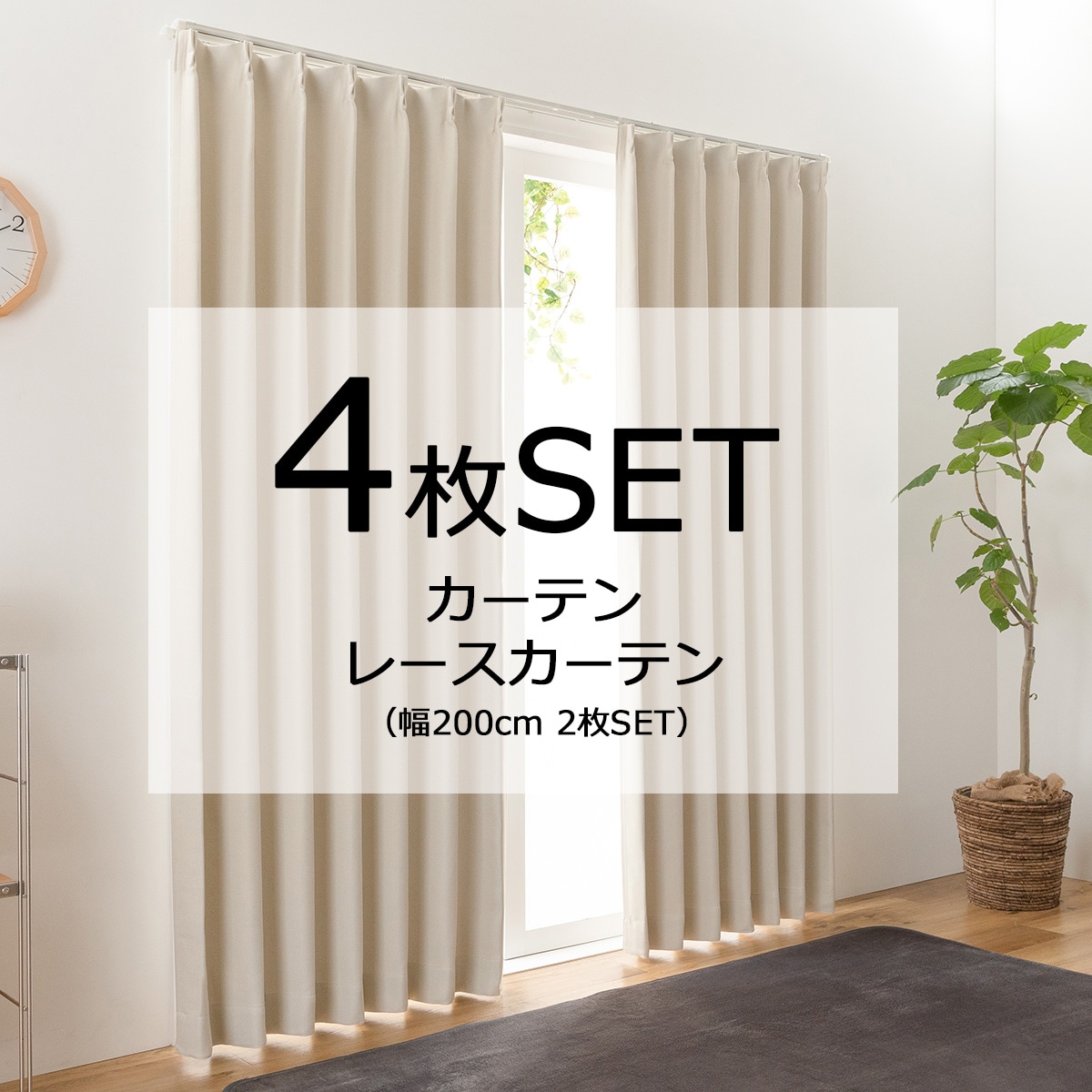 [セット内容]幅100cm・150cm/カーテン2枚+レースカーテン2枚(4枚組)幅200cm/カーテン1枚+レースカーテン1枚(2枚組)■カーテン/ポリエステル100%、レースカーテン/ポリエステル100%▼幅150・200cmのサイズについては、継目(はぎ合わせ)があります。●アジャスターフック付き(Aフック)●カーテンタッセル2本付き(1枚物1本付き)●洗濯機OK(ネット使用)●カーテン:中国製またはインドネシア製(生地:ベトナム製)、レースカーテン:中国製[カーテン]【形状記憶加工付き】【防炎】【2級遮光】【生地厚の目安:ふつう】[レースカーテン]【UVカット率:約86%】【目隠し効果】(昼のみOK) 目隠しレベル/昼4【防炎】【明るさの目安:やや暗い】【生地厚の目安:ふつう】【小型別配送】※一般のレースカーテンに比べて、内側から外が見えにくくなります。部屋の中が見えにくくなる効果は、夜間照明などで部屋の中が明るい場合は発揮されません。※当社のUVカット機能表示は、公的機関によって検査された紫外線遮蔽率70%以上の商品に表示しています。UVカット率が高く目隠し効果の高いレースカーテンは、通常のレースカーテンと比較してお部屋が若干暗くなります。※消防法に定められた防炎性能基準の条件を満たしたものを「防炎商品」と呼び、その信頼性の証が防炎ラベルです。防炎は「不燃」と異なり、あくまでも「燃えにくい」という性能を示すものです。※沖縄県や一部島しょ部など配送上の都合によりお届けできない地域がございます。※ご覧になるモニターの機種や設定、ご使用の環境によっては、色の見え方が異なる場合がございます。予めご了承ください。