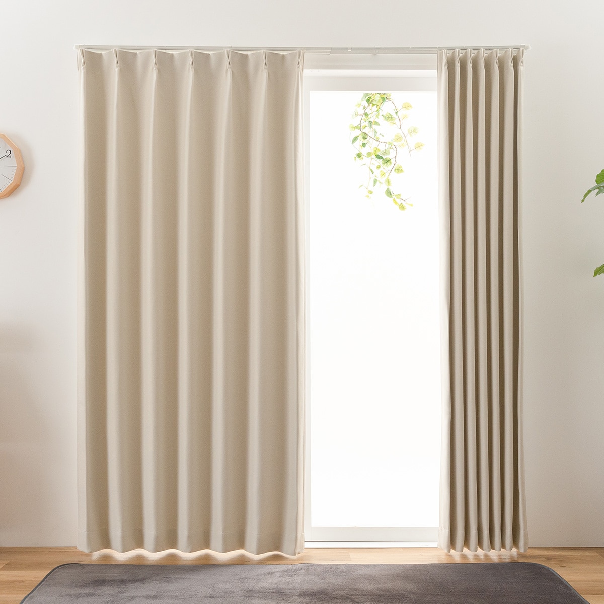 2級遮光カーテン(アイボリー)幅100cm・150cmはカーテン2枚+レースカーテン2枚(4枚組)、幅200cmはカーテン1枚+レースカーテン1枚(2枚組)でお届けします。