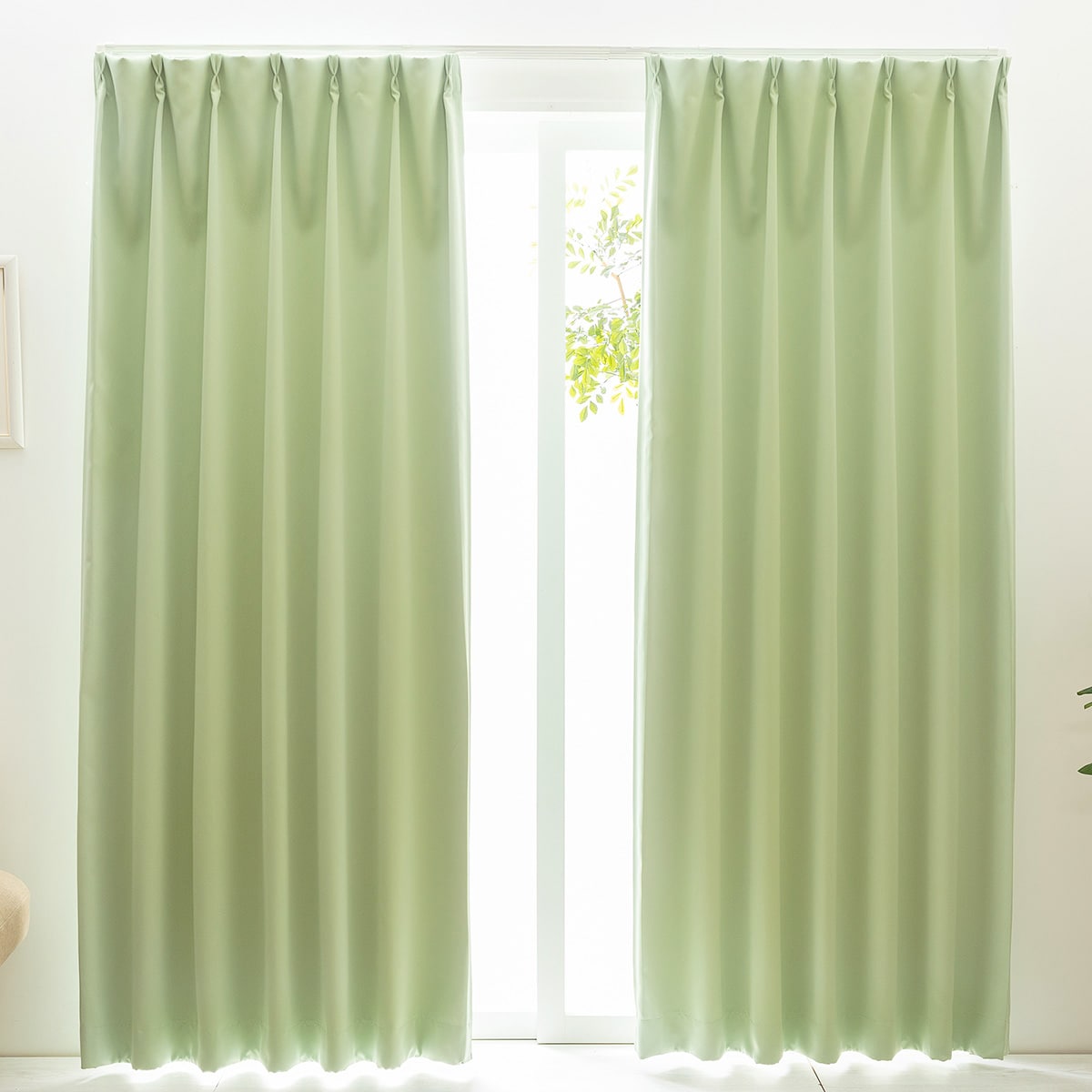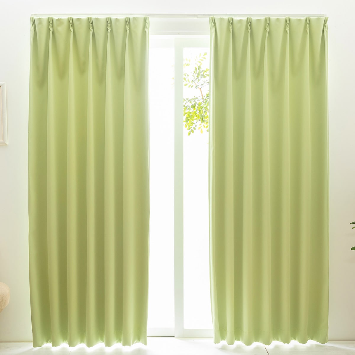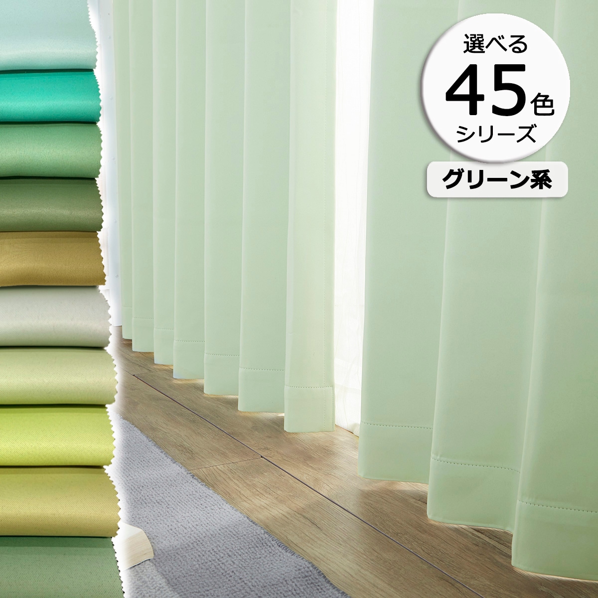 [45色シリーズ×99サイズ]【形状記憶】防炎1級遮光カーテン(グリーン系)/日本製・無地