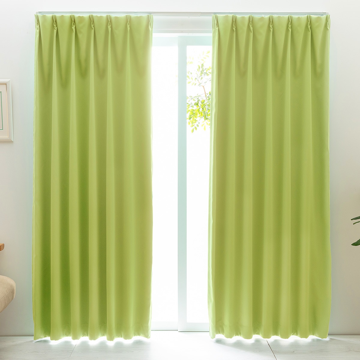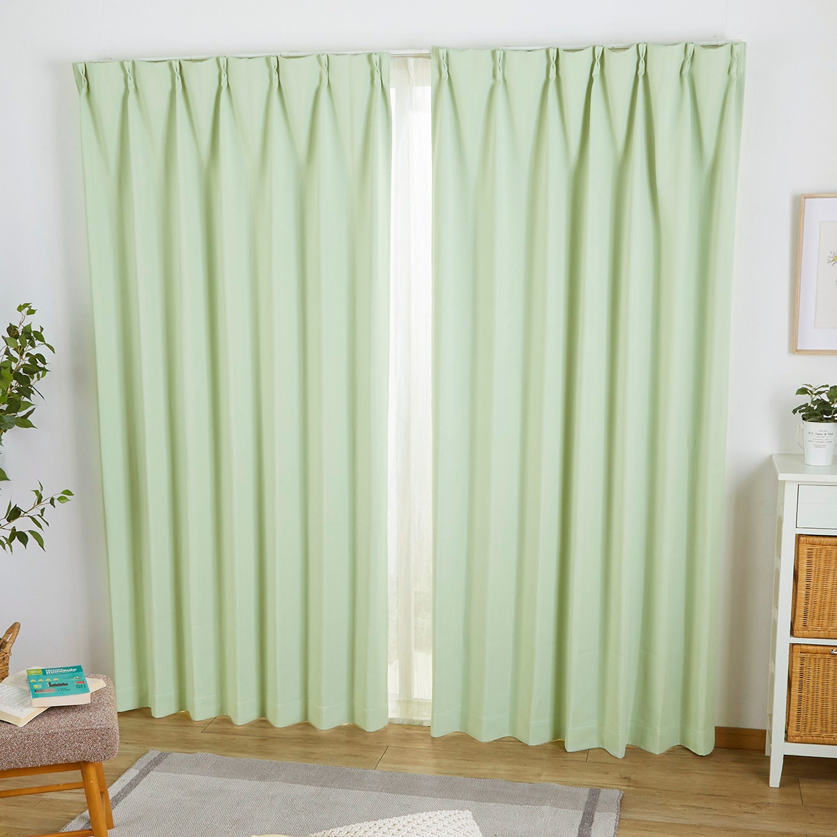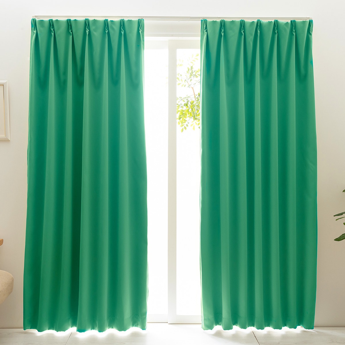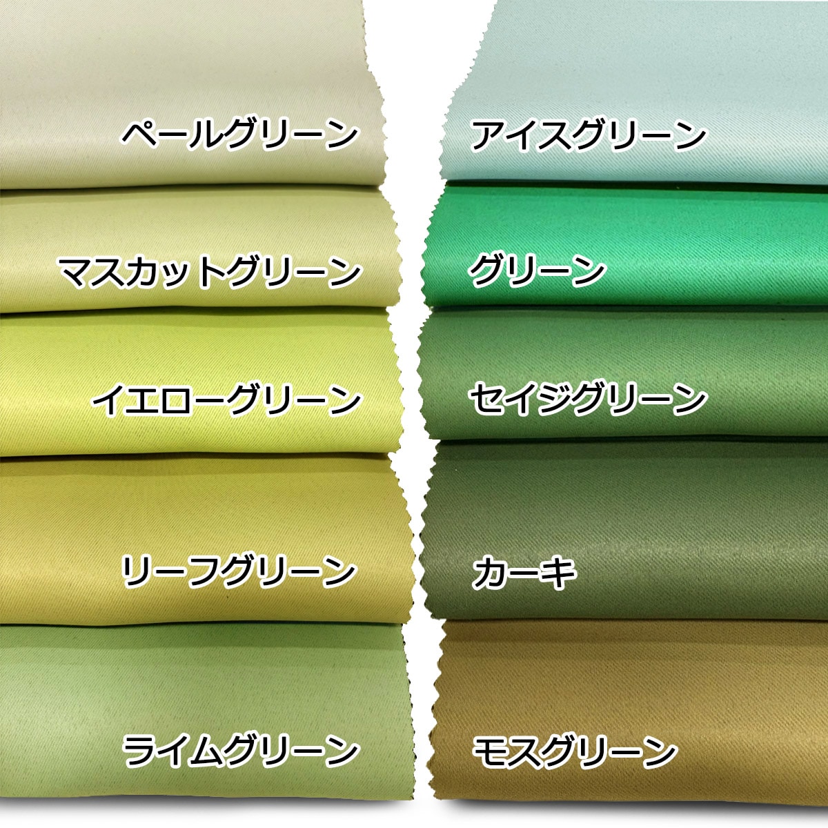 ・パッと目を引く発色のいい色合いからなじみの良い色まで豊富なグリーン系カラーが選べます。・柔らかくなめらかな肌ざわりのサテン生地。裏地も表と同じ色。・万が一の引火にも炎は燃え広がりにくい防炎加工つき。・ドレープが美しく、開閉もスムーズな形状記憶加工付き。・表裏地の間に黒糸を織り込むことで高い遮光性を発揮します。