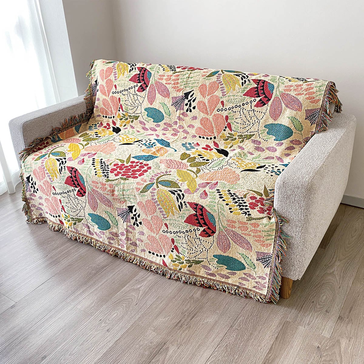 178×160cm A(カラフル) ソファやベッドにかけるだけで、鮮やかな植物柄がお部屋を明るく彩ります。