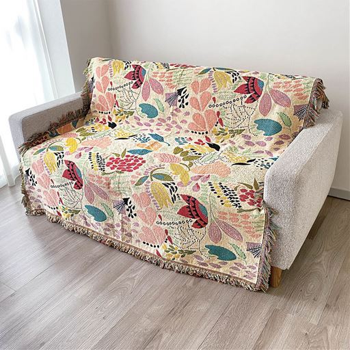 • 178×160cm A(カラフル) ソファやベッドにかけるだけで、鮮やかな植物柄がお部屋を明るく彩ります。