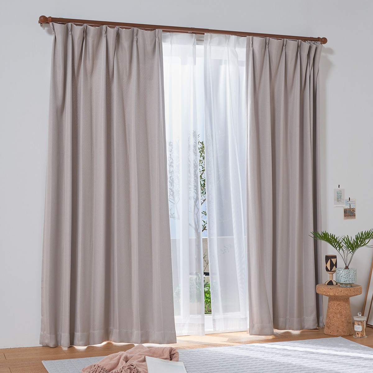 〔形状記憶加工付き〕セットで届くからコーデ要らず! お手頃プライスの遮光カーテン&ミラーレースカーテンセットです。