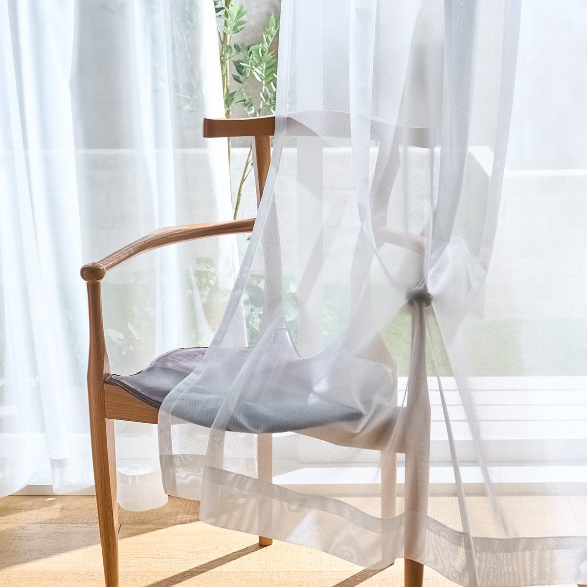 レースカーテンはやさしい光をお部屋に取り込み、ゆったり心地いい時間が流れます。