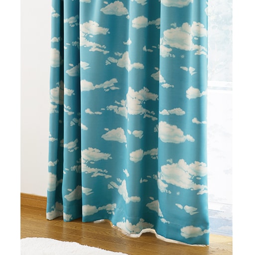 【ネット限定】〔形状記憶加工付き〕爽やかなブルーがお部屋のアクセントに! 青空模様のプリントカーテンです。ほどよく光をやわらげ、お部屋が明るく感じられる2級遮光です。