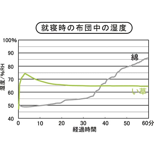 い草には、就寝時の布団の中の湿度を一定に保とうとする調湿効果があります。