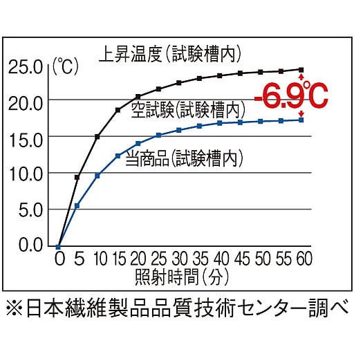 遮熱性試験(赤外ランプ60℃法)においては、60分後の温度上昇を、6.9℃抑えることができ、遮熱性効果も確認できています。