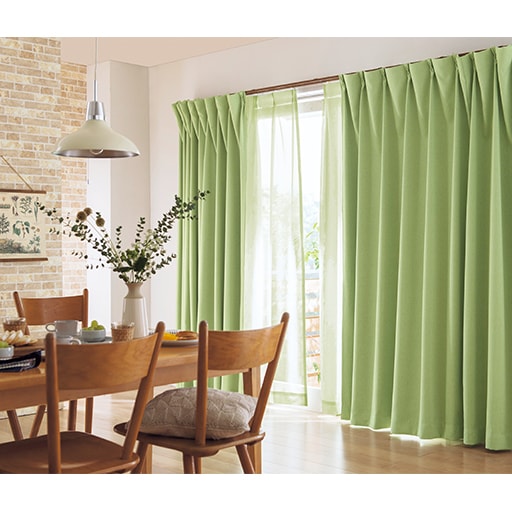 ディープグリーン ※幅100cmの場合:プリーツ9個安心の防炎機能と1級遮光機能付き。