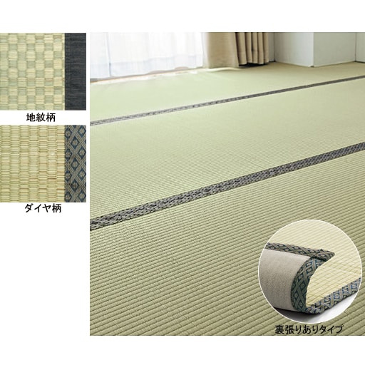 ヘリテープ付き。左:地紋柄、右:ダイヤ柄 ・2畳・3畳・4畳・4.5畳:4m ・6畳・8畳:5m