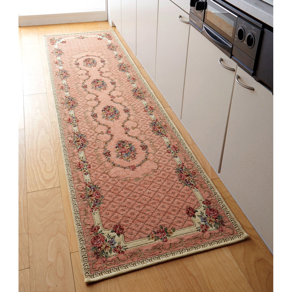 エレガントなブーケ柄のキッチンマット