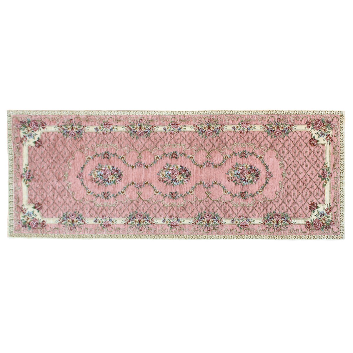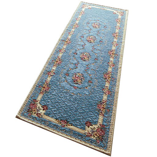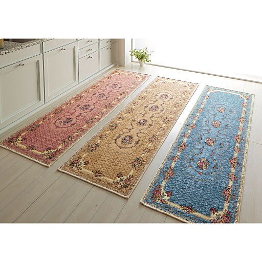 (左から) ピンク・ベージュ・ブルー(横240×縦65cm)エレガントなブーケ柄のシェニール織りキッチンマットです。