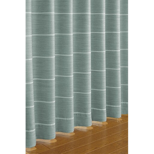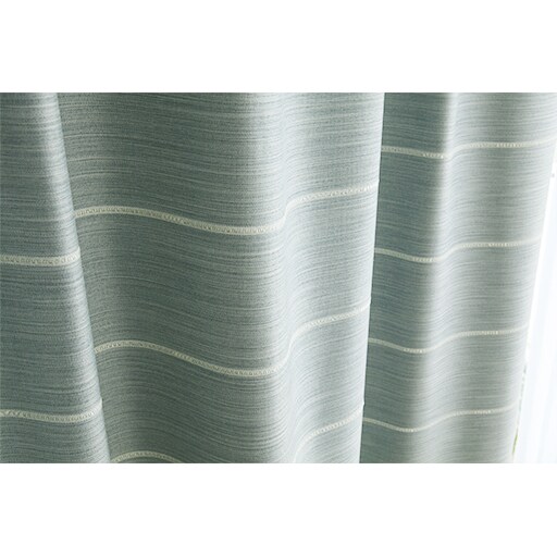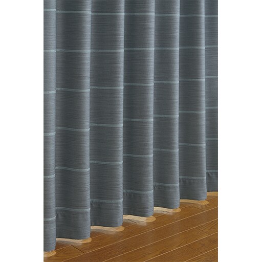 【ネット限定】デニム地のような杢感のある、無地調の遮光カーテンです。アクセントの白いラインが窓辺をスタイリッシュに演出。安心の防炎機能をプラスしました。